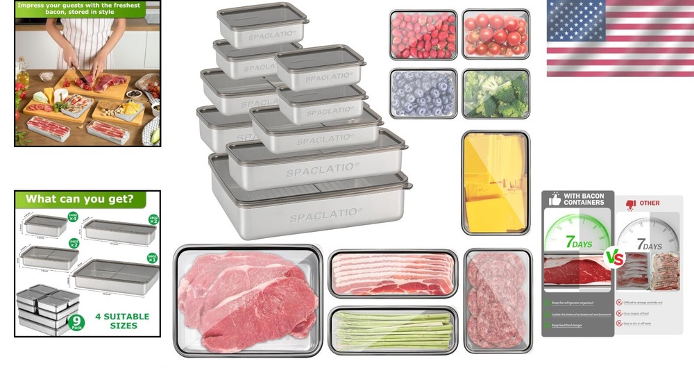 Versatile Airtight Deli Meat Storage Containers - Dishwasher Safe & Hygienic ‹ › ‹ › ‹ › ‹ › ‹ › ‹ › ‹ › ‹ › ‹ › Versatile Airtight Deli Meat Storage Containers - Dishwasher Safe & Hygienic Innovative Design: Uniquely crafted bottoms with raised stripes reduce direct contact between food and container. Helps maintain optimal hygiene levels, ensuring a cleaner storage environment. Versatile Sizes to Meet Your Needs: 4 containers for bacon or lunch meat (10.4 x 3.9 x 1.97 inches). 2 compact cheese containers for the refrigerator (5.1 x 3.9 x 1.81 inches). 2 medium-sized containers (7.7 x 5.5 x 1.81 inches). 1 large container (10.6 x 7.9 x 1.81 inches). Durable Stainless Steel: Crafted from premium stainless steel with a sleek black coating. Designed for long-term use while enhancing your kitchen's aesthetic. Maximum Freshness: Sealed plastic lid locks in freshness and prevents gas exchange. Keep your food fresh, tasty, and odor-free for extended periods. Thoughtful Gift: Ideal for moms, home cooks, and anyone who cherishes an organized kitchen. A practical and stylish gift for loved ones or colleagues. Why Choose Our Airtight Deli Meat Storage Containers? Elevate your food storage game with our Versatile Airtight Deli Meat Storage Containers. Designed with innovation and hygiene in mind, these containers not only keep your food fresh but also bring elegance to your kitchen. The variety of sizes allows for seamless meal prep and organization while the premium stainless steel construction ensures durability. Ideal for gifting, they simplify food storage while adding a touch of sophistication. Invest in cleanliness and style—order your set of Versatile Airtight Deli Meat Storage Containers today! Shipping Free & Fast Shipping - We offer free shipping to most of the USA with a normal delivery time of 3-10 businessdays. However, due to various situations, additional delivery time (up to 3 weeks) may be required for some items. Alternative Carriers - We may use alternative carriers (e.g. USPS, FedEx, UPS, etc.) to ensure your package arrives safely and on time. Due to the use of multiple carriers, we are unable to provide a tracking number automatically. Handling Time - Orders are processed and shipped within 1-5 business days of receiving cleared payment. Shipping Restrictions - Shipping to Alaska, Hawaii, Puerto Rico, Guam, and other US territories may incur shipping charges or delivery restrictions. Please contact us before ordering, or your order can be refunded/cancelled. State Restrictions - There may be restrictions based on your state of purchase. For example, certain items may not be shipped to California due to state regulations. Contact for Tracking Updates - If you require tracking updates or have any concerns about the delivery of your order, please feel free to contact us, and we will be happy to assist you. Return Please see our ebay return policy. We do not accept return on most products. This is to avoid customers mis-using ebay returns. All sales are final. Please be sure to check the return policy listed at the top of the listing. In rare cases, we may accept returns, if the buyer pays both ways shipping and 20% restocking fee. If you are un-sure of return policy of a particular item, please ask before buying. Payment We accept all major credit cards, PayPal, and Apple Pay for your convenience. Your payment information is secure and encrypted to ensure a safe and seamless transaction. Please complete your payment within 3 days of purchase to avoid any delays in shipping. Feedback Your feedback is extremely important to us. We strive to provide the best products and customer service possible. If you are satisfied with your purchase, please take a moment to leave us a positive review. If you have any concerns or issues with your order, please contact us before leaving negative feedback. We are committed to resolving any problems and ensuring your satisfaction. Contact Us If you have any questions or concerns, please feel free to reach out to our customer support team. You can contact us through the eBay messaging system. We are available Monday to Friday, 9:00 am to 5:00 pm EST, and we will do our best to respond to your inquiry within 24 hours. Buy it now and enjoy a pleasant shopping experience! UPC: Not Set Unit Quantity: 1 Material: Stainless Steel Features: Airtight,Dishwasher Safe,Reusable,Hygienic Design,Portable Set Includes: Lid Character: Not Set Theme: Not Set Department: Unisex Adult Brand: Unbranded Item Height: Food Storage Containers Item Length: Food Storage Containers Item Width: Food Storage Containers Number of Items in Set: 9 Color: Stainless Steel Type: Not Set Shape: Rectangular Capacity: 20.8 pounds Lid Type: Latch MPN: Not Set Character Family: Not Set Style: Modern Country/Region of Manufacture: Not Set Item Depth: 1.97 in Pattern: Not Set Item Diameter: Not Set Manufacturer Warranty: Not Set Model: Not Set Unit Type: Unit Personalize: Not Set