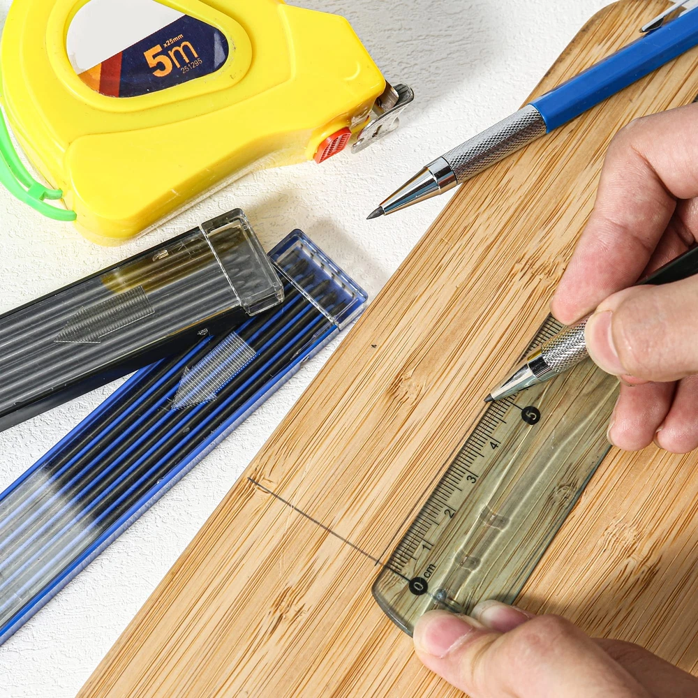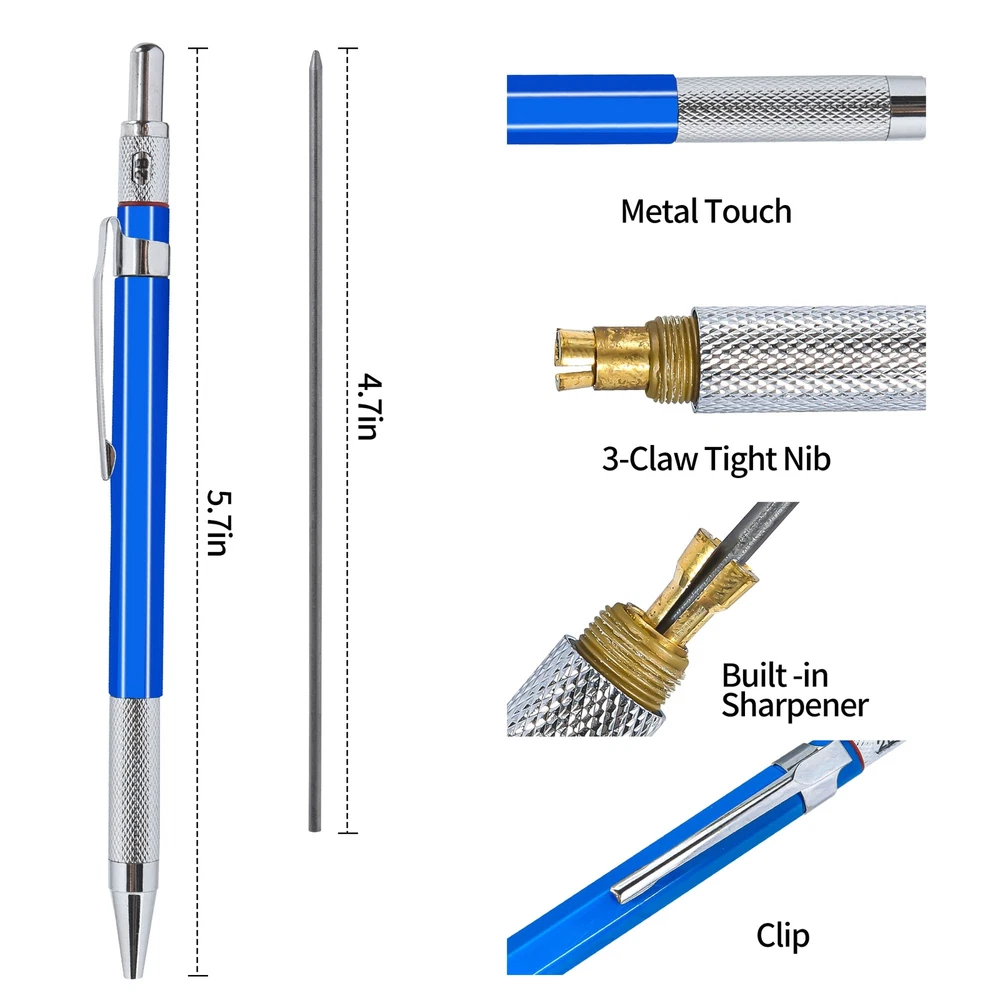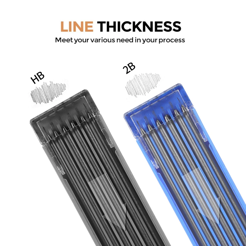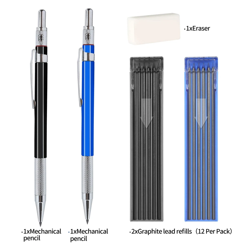 Automatic Drafting Pencil - 2 mm Mechanical Pencil, Artist Drafting Marker Carpenter pencils with Lead Refill HB, 2B for Writing, Sketching Drawing Key Features of Drafting Pencil: Easy to use - The 2.0 mm mechanical pencils are easy to use, just push the top of the pencil to release the lead refill, which can help you finish your writing and drawings easily. Economic Design - The 2mm mechanical pencil is designed with rubber and metal material, which will provide you a comfortable and non slip experience to write. Mutiple Refill - The drawing mechanical pencils come with 24 pieces refill (HB, 2B), which you can choose for the right hardness of lead refills. Widely Used - The mechanical drafting pencils are convenient to use, which can be used by artists, professionals, teachers and students, suitable for writing, draft, drawing, sketch. Specification: Color: black and blue Refill size: 2.0 mm 2B, HB Quantity: 24 pieces (2 cases) Package includes: 2 x Mechanical pencils 2 Cases of refills (24 pieces in total) Package Include: The mechanical pencil set include 2 pcs 2mm mechanical drafting pencils, 24 Pieces Leads(HB, 2B), which may choose different refill according your needs. The Carpenter Pencils are suitable for draft drawing, crafting, art sketching. Qualitied Mechanical Pencil: The Mechanical Pencils is made from high quality metal and rubber materials, and nice design, which can provide you a comfortable and non-slip experience to write, 2mm mechanical pencil is suitable for artists, professionals, teachers and students. Perfect for writing, draft, drawing, sketch. Smooth and Durable: The drawing mechanical pencils is smooth and retractable, the lead advances easily at the touch of a click. Lead works with mechanical pencil with no need to sharpen, very convenient. Superior drafting pencil for sketching, drawing, test, carpenter or crafting. Lightweight and Convenient: Our mechanical pencils are lightweight, and comfortable to grip, which made it easy to use by any beginner, child or adult, and you may take it with you everywhere, different choice of lead hardness(HB, 2B), and best erasers. 100% Good After-Sale Service: We are confident with the quality of 2.0 pencil set, and we are very happy to either provide a Refund or a Replacement on your purchase after 45-days ordering, please feel free to contact us if you have any questions about the drafting pencil.