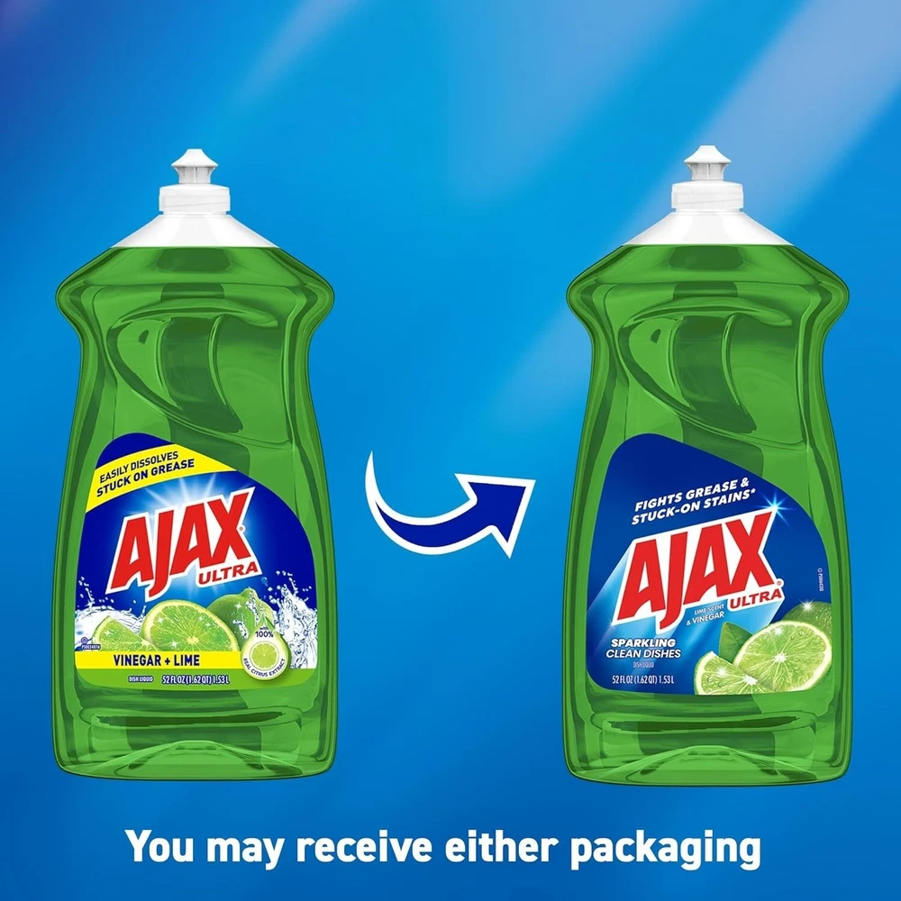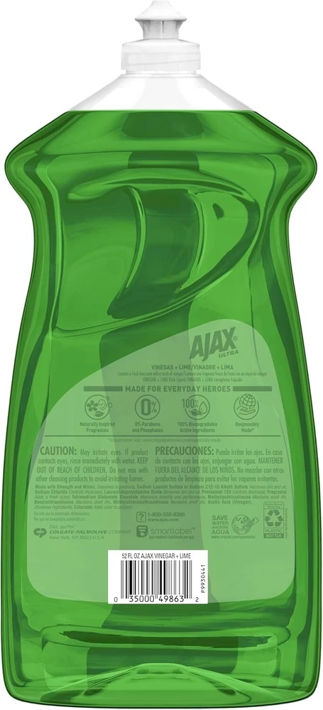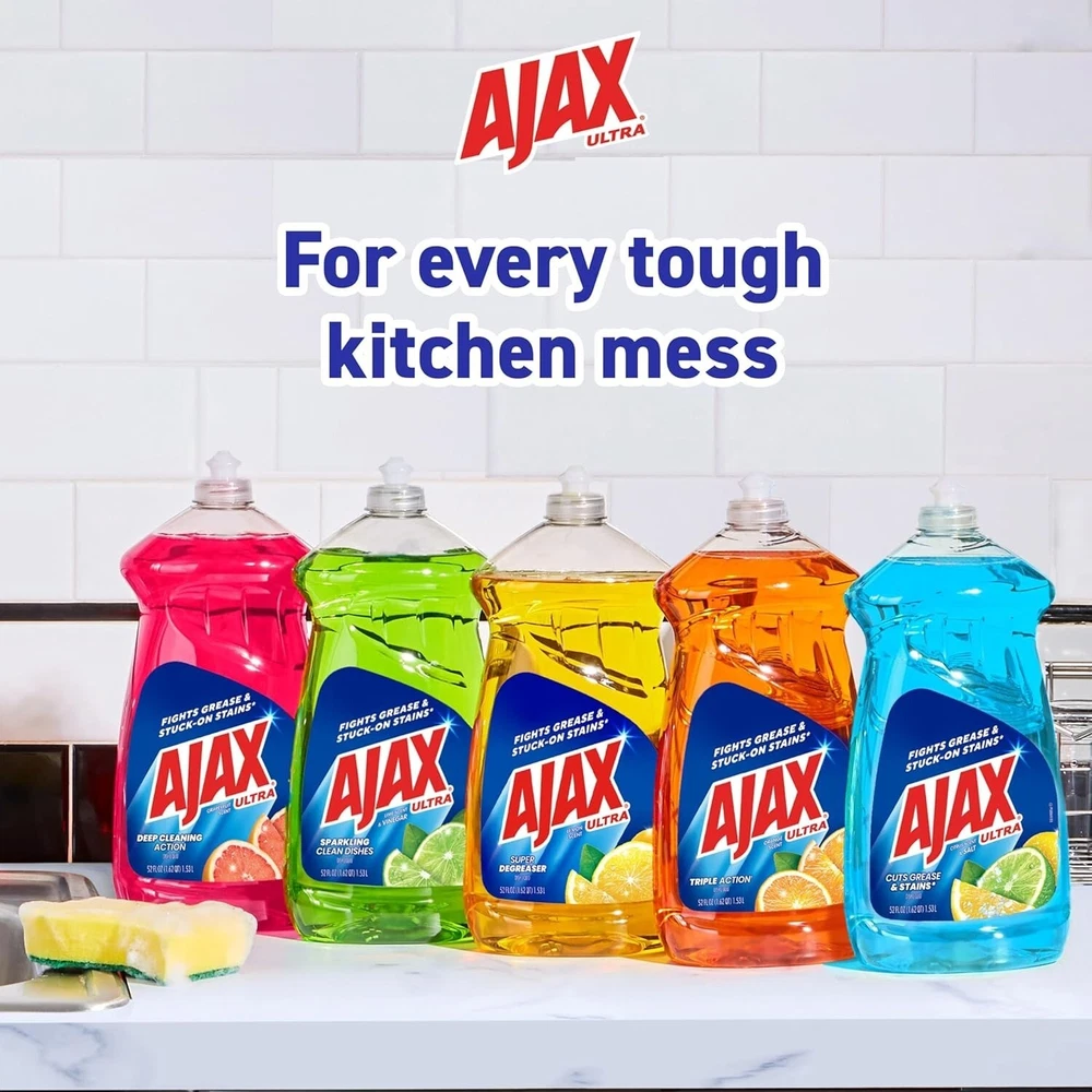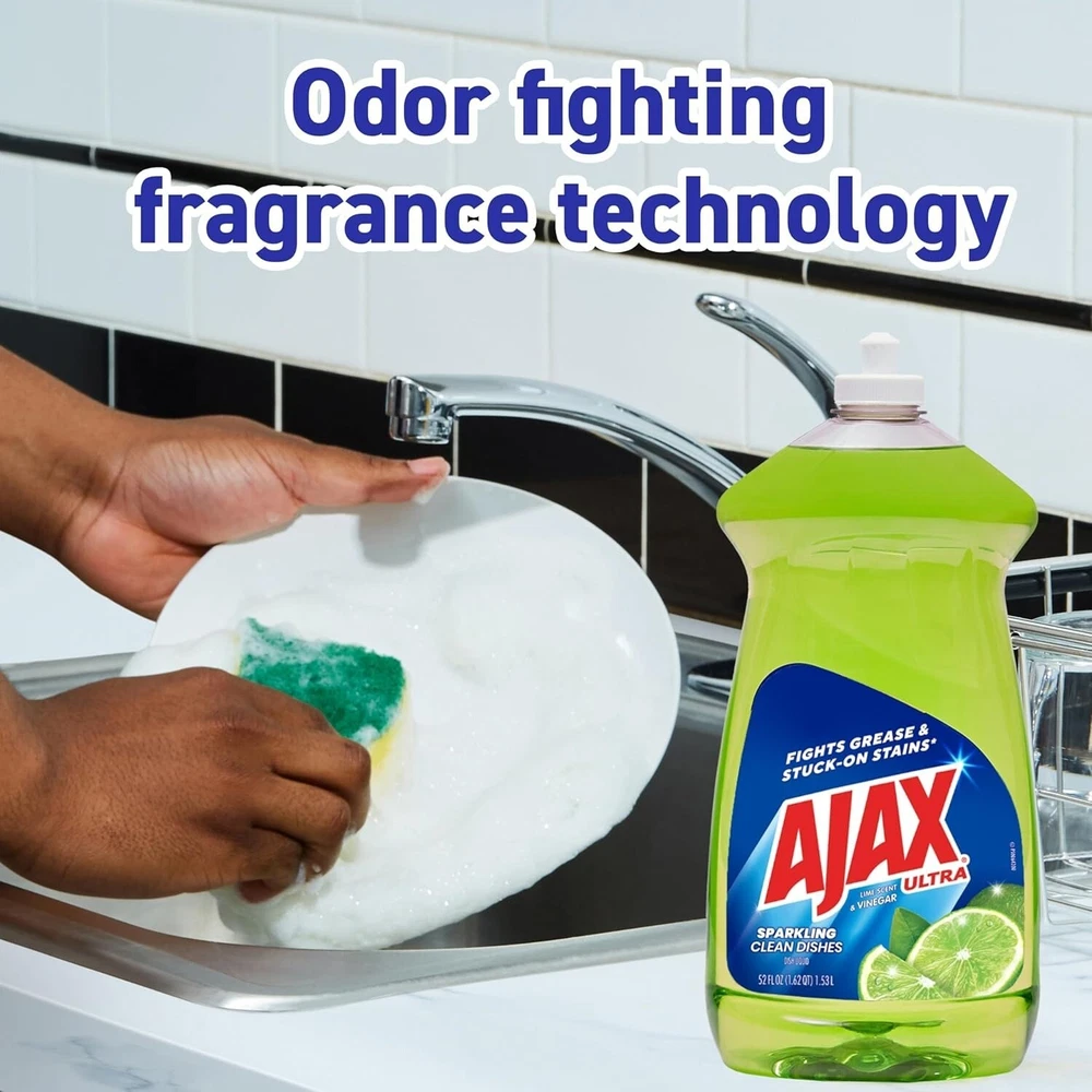Ajax Ultra Bleach Alternative Liquid Dish Soap, Grapefruit - 52 Fluid Ounce About this item One 52 oz Bottle of Ajax Ultra Liquid Dish Soap Lime Scent and Vinegar, Sparkling Clean Dishes This liquid dish soap brings a freshness to your kitchen with a burst of limes This green dish soap provides a pleasant and powerful cleaning experience Enhance your cleaning arsenal by harnessing the natural power of vinegar, a versatile cleaner that effortlessly tackles tough stains and grime This dishwashing liquid is made with naturally inspired fragrances, zero parabens and no phosphates The power of Ajax kitchen dish soap goes beyond the sink. This versatile dish soap liquid allows you to pre-treat laundry, wash tires, and wipe down appliances Leave the grime to us so you can get back to what really matters 100% biodegradable active ingredients