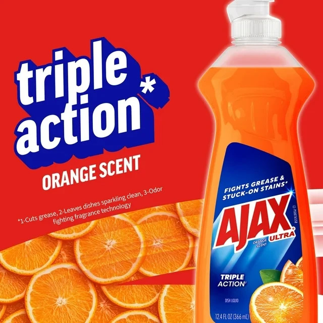The Ajax Ultra Triple Action Orange Dishwashing Liquid Soap is a powerful and efficient cleaning product specifically designed for dishes. With a vibrant orange scent, this liquid soap effectively removes tough stains and grime, making it a reliable choice for maintaining clean and hygienic dishes. The 12.4 fl oz volume ensures long-lasting use, while the Fairtrade certification adds a touch of environmental responsibility to your cleaning routine. Perfect for everyday use, this Ajax dishwashing liquid is a must-have for any household looking to keep their dishes sparkling clean.