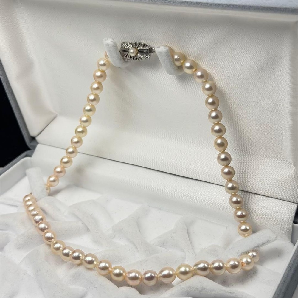 We only handle genuine items sourced from trusted suppliers in Japan. Each item undergoes a thorough inspection by experienced staff. [Condition Description] Cleaned and well-maintained. As these are natural genuine pearls, there may be slight blemishes or minor surface imperfections. Specifications Pearl Size: approx. 6.5–7.0 mm (0.26–0.28 inches) Length: approx. 41 cm (16.14 inches) Clasp: SILVER (stamped) Total Weight: approx. 25.2 g Accessories None The case shown in the photos is for display purposes only and is not included. The item will be carefully packed for shipping. [For U.S. Buyers:] shipping from JapaOrders shipped to the United States are sent via DDP (Delivered Duty Paid) service. Shipping rates for U.S. destinations already include import duties and customs clearance fees, so no additional payment is required upon delivery. (For items covered by eBays Authenticity Guarantee, import duties are not included in the shipping cost, and buyers can choose between DDU or DDP at checkout.)n. [Please Note] shipping from Japan. [Payment] You can use secure payment methods provided on this platform. [International Buyers] Import duties, taxes, and fees are not included in the item price or shipping cost. These additional charges are the buyer’s responsibility. Depending on your country or region, they may be automatically calculated at checkout. In some cases, they may not appear at checkout and could instead be collected by the shipping carrier upon delivery. Please note that these fees are separate from shipping costs. (Shipping rates for U.S. destinations already include import duties and customs clearance fees, so no additional payment is required upon delivery. For items covered by eBays Authenticity Guarantee, import duties are not included in the shipping cost, and buyers can choose between DDU or DDP at checkout.) [Item Condition Note] Please note that the actual color of the item may vary slightly depending on lighting conditions, your device screen, and individual color perception. As this is a pre-owned item, there may be slight natural odors depending on storage and material. We strive to present and describe the item as accurately as possible in our photos and descriptions.