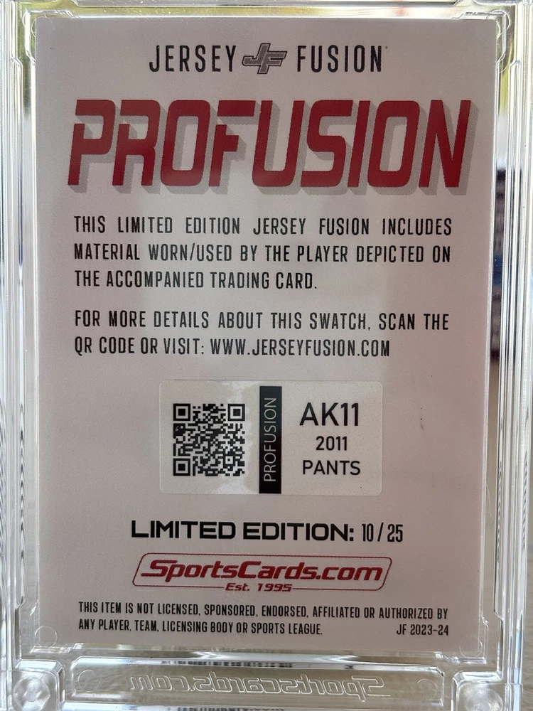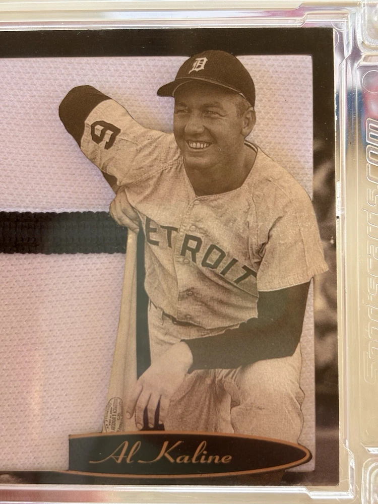This Al Kaline Jersey Fusion Pro Fusion card with Game Worn Pants is a must-have for any Detroit Tigers fan. Featuring a 2011 Topps set and a card number of 10/25, this sports trading card is an excellent addition to your collection. The card is in excellent shape, with no noticeable flaws or defects. The card's highlight is the autographed game-worn pants, which adds a unique touch to the memorabilia. The card is parallel/variety, which makes it a rare find. This card is perfect for anyone looking to add a valuable and unique piece to their collection.