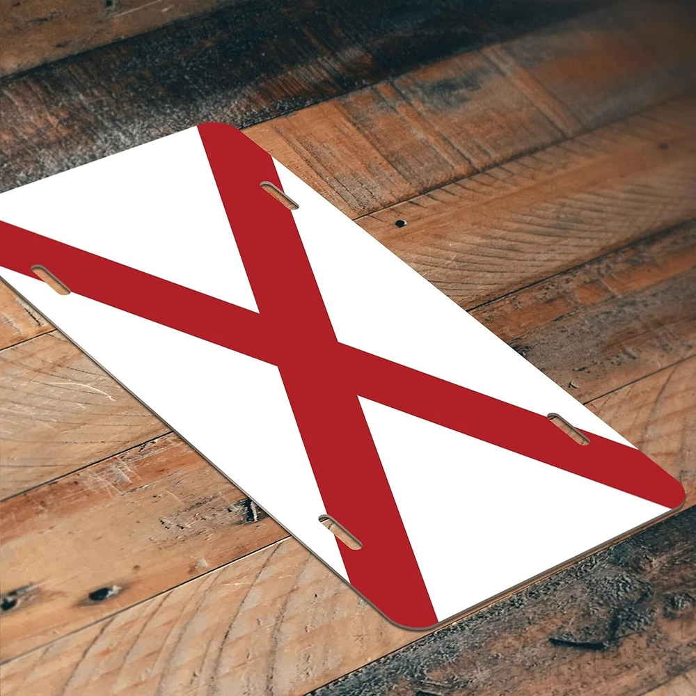 This license plate/ sign is painted on a sturdy .32 gauge aluminum blank . There is no actual emblem or chrome used, nor is it actual brushed aluminum or bare steel. What you see is simulated to look like what you see in the listing photo. Any questions please ask. Thank you. 0 Alabama State Flag Aluminum Metal Novelty License Plate Tag NEW! Features Please read the entire listing description BEFORE purchasing: These are NOT embossed or textured or raised in any way. They are smooth, glossy and maintenance free. Features Our High-Quality License Plates Are Sturdy and Constructed of Super Durable 32-gauge Aluminum with a baked-on clear gloss finish Designed to Hold Up to the Elements So Your License Plate Will Last for the Long Haul. Universal Fit for All Cars and Trucks. Approximate Dimensions Are 12"X6". Plate Is Secured In Place Via Fasteners On Top and or Bottom with the standard screws/bolts that hold a license plate to your car (Not Included). Makes A Great Gift: Ideal Gift for Family or Friend That has Everything. SATISFACTION GUARANTEED: Our friendly, knowledgeable staff is here to help, and customer satisfaction is our top priority! If you have any issues with your order or you’re not happy for any reason, just let us know and we’ll be there to help! PROUDLY MADE IN THE USA: Buy with confidence from an American owned and operated company! NuggetWorld Products are produced in our state-of-the-art facility in Chandler, Arizona, proudly made in the U.S.A.! Thank you for considering my items! Any questions please feel free to message me. I will respond within minutes!