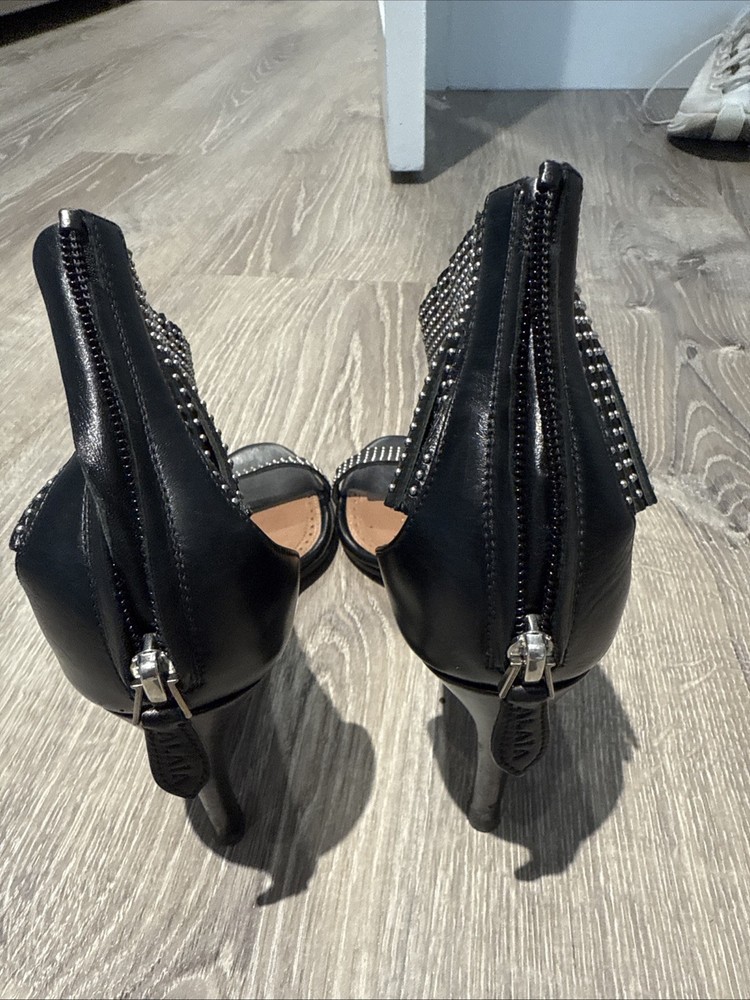 The Alaia Shoes Women's in size 35.5 feature a sleek black frame with a shield style design. Made by the renowned brand Alaia, these shoes are a stylish and chic addition to any woman's wardrobe. The black color adds a touch of elegance, making them versatile for both casual and formal occasions. With their unique shield style, these shoes are sure to make a statement and elevate any outfit.