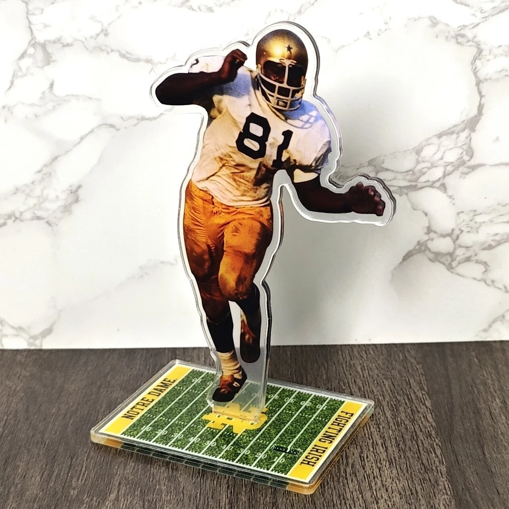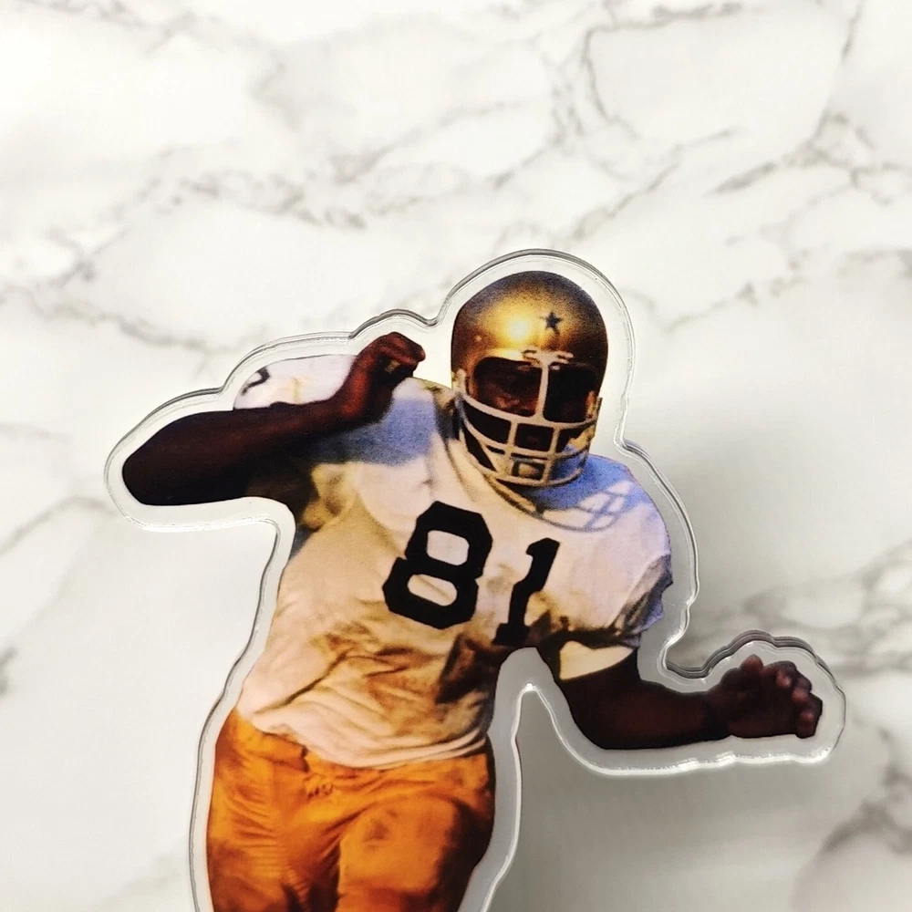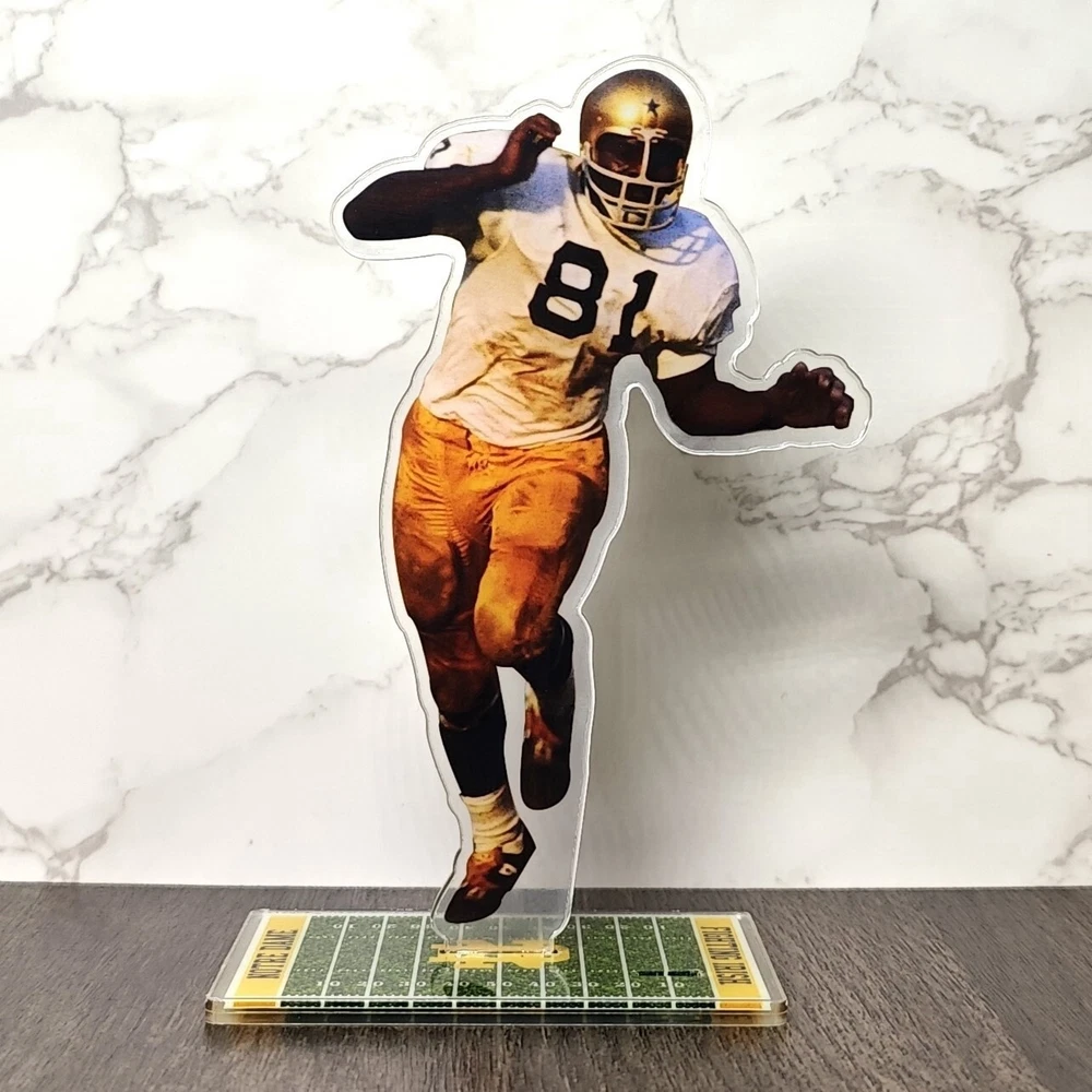 Item Details: Laser-cut 2D (Two Dimensional) acrylic standee Measure: Approx 6.4 inches tall One side design Material: 100% Acrylic Add this to your never ending collection of football memorabilia. This laser-cut two dimensional figurine depicts your favorite player in action. Whether displayed in your home, office, for fan cave, this item is perfect for showcasing your love for football.