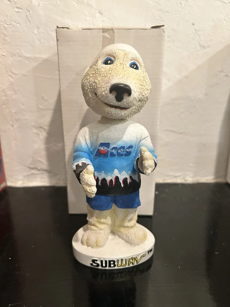 Alaska Aces Hockey Team Boomer the Polar Bear Mascot Bobblehead in Original Box PLEASE VIEW ALL MY BOBBLEHEADS ITS TIME TO SELL. I WILL BE LISTING OVER 800 FROM 2000-2003 ERA PLEASE VIEW DETAILED PICTURES THIS IS THE EXACT BOBBLEHEAD AND ORIGINAL BOX YOU WILL RECEIVE. SELLING AS IS NO RETURNS I have had this since it was released stored in my Bobblehead cabinet in beautiful condition. It hasn't been touched in over 20+ years until I took the pictures to list it. ANY QUESTIONS PLEASE MESSAGE ME