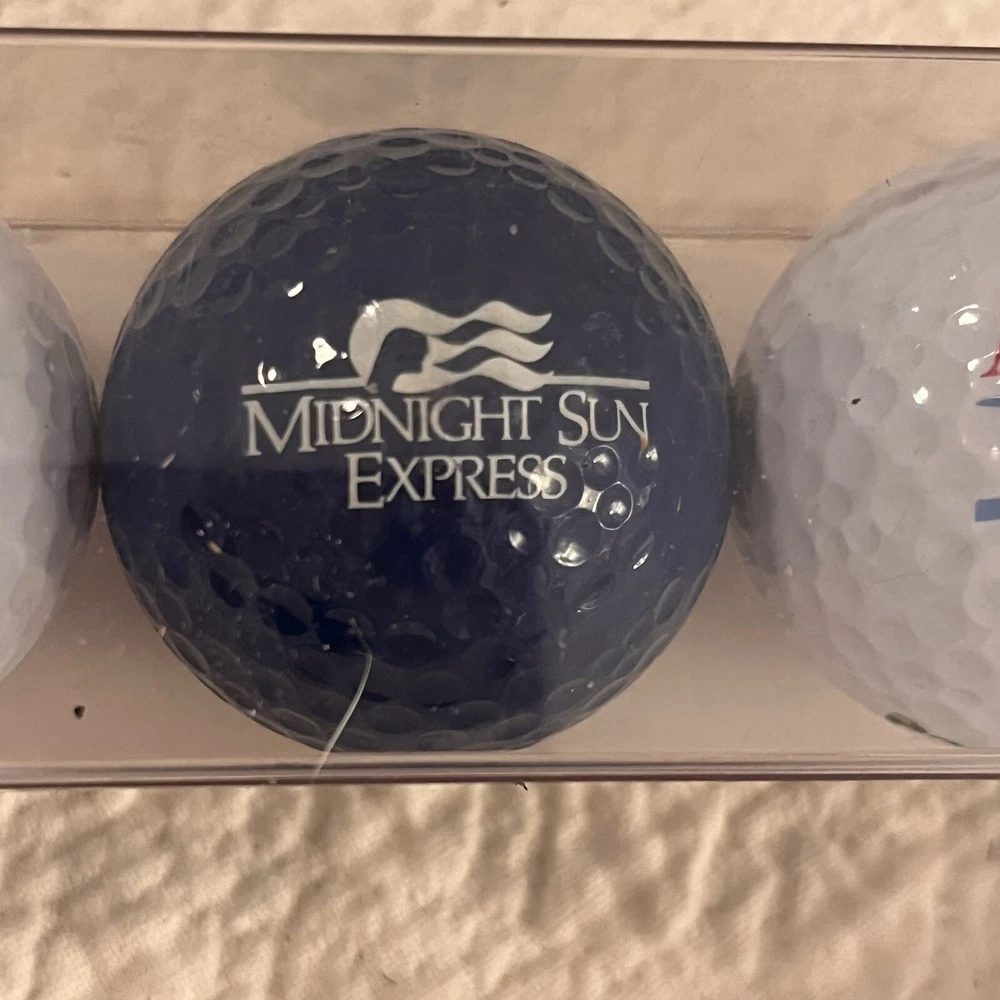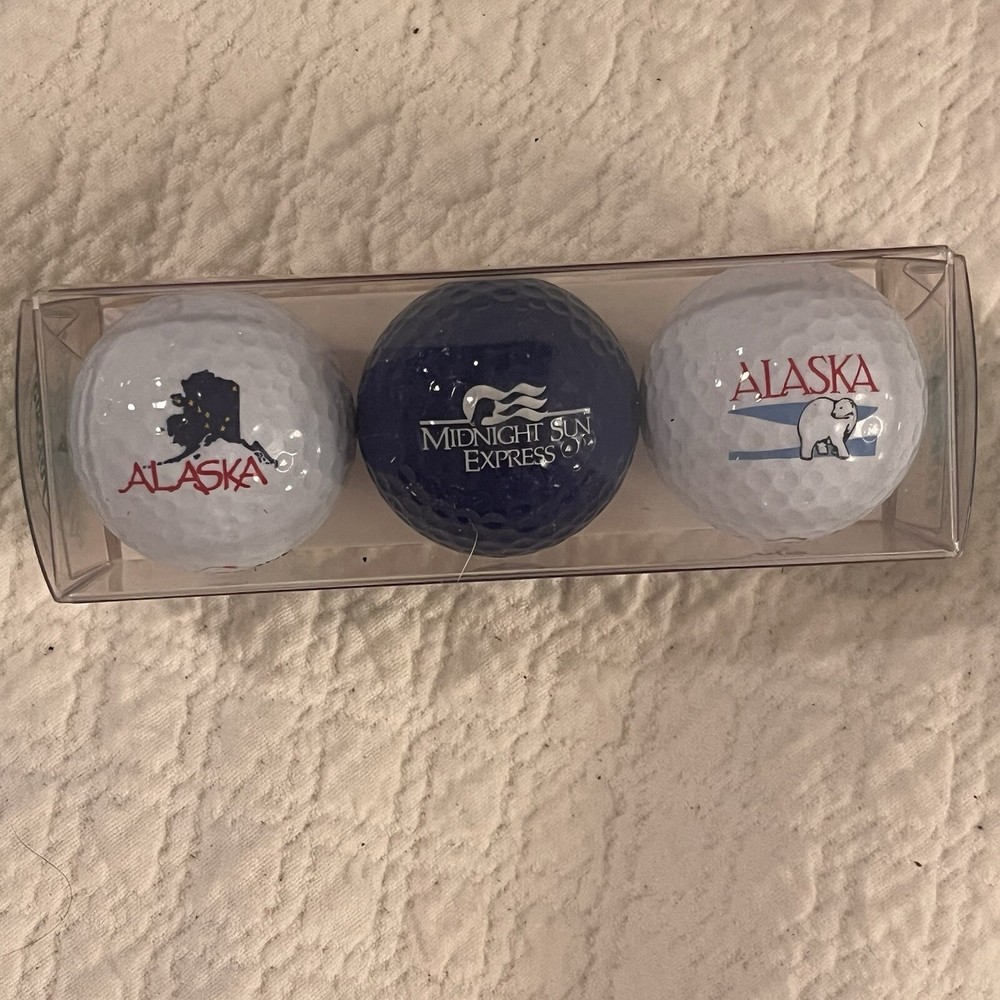 Set of three balls from the Midnight Sun Rail Tour Princess Cruise Lines. Images include map of Alaska’s, polar bear and Midnight Sun Gift pack trio