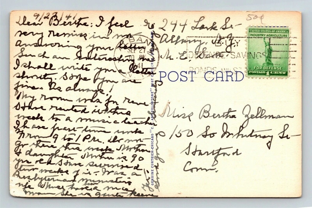 Unit of Sale: Single Unit Subject: Cities & Towns Country: USA Original/Licensed Reprint: Original Region: New York Theme: Cities & Towns Year Manufactured: 1941 Type: Printed (Lithograph) City: Albany Era: Linen Postage Condition: Posted Country/Region of Manufacture: United States