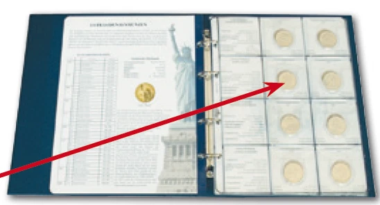 Coins & More HANDMADE PRODUCTS AND ACCESSORIES FOR COLLECTIONS MADE IN ITALY presents .... DOLLAR PRESIDENTS Album for the specialized collection of 1 Dollar coins commemorative of the 39 American Presidents, in the 10 years of emissions programmed by the two mints of Denver and Philadelphia for a total of 78 coins. Dark blue binder with silver print, four mechanism rings complete with case. Coins & More HANDMADE PRODUCTS AND ACCESSORIES FOR COLLECTIONS MADE IN ITALY presents .... DOLLAR PRESIDENTS Album for the specialized collection of 1 Dollar coins commemorative of the 39 American Presidents, in the 10 years of emissions programmed by the two mints of Denver and Philadelphia for a total of 78 coins. Dark blue binder with silver print, four mechanism rings complete with case.