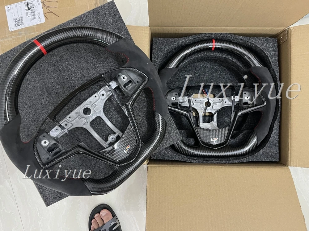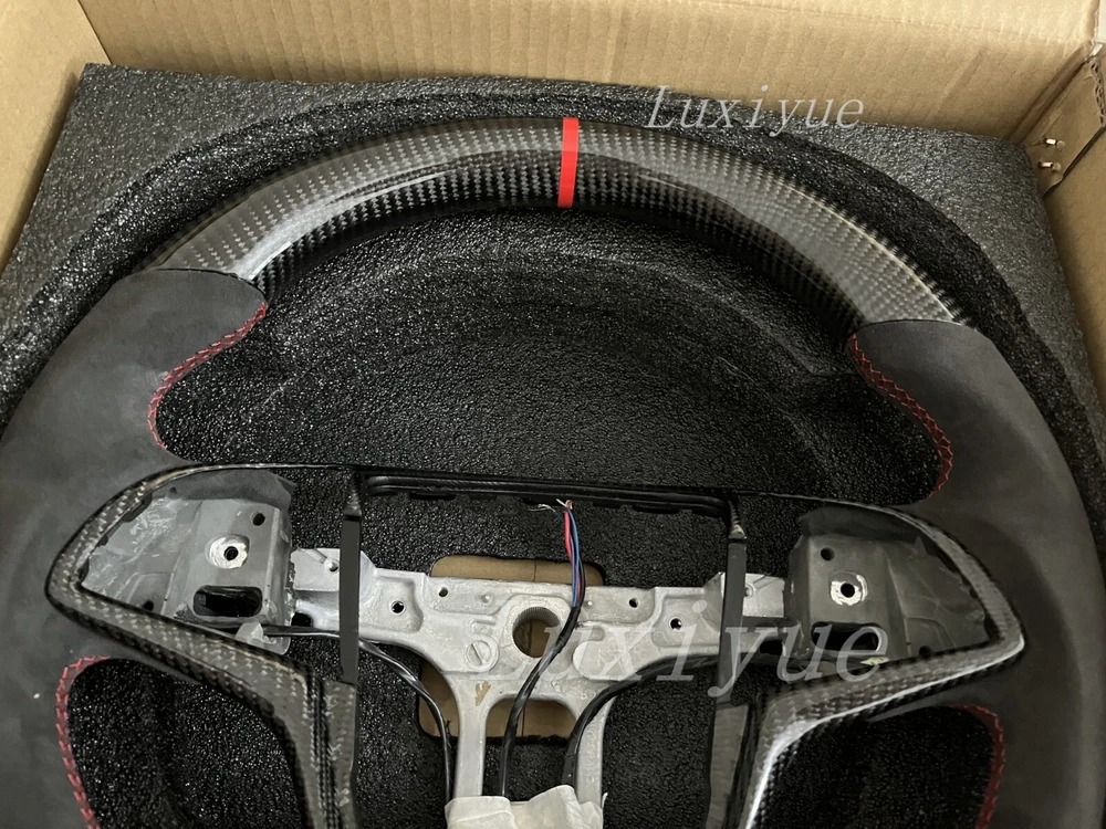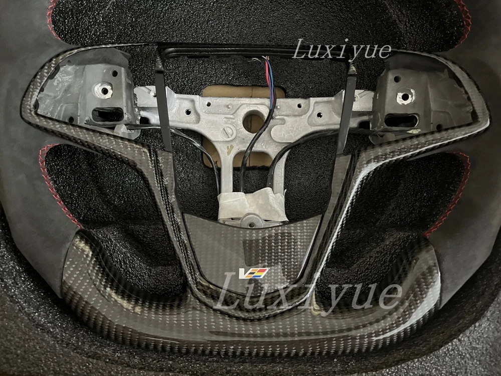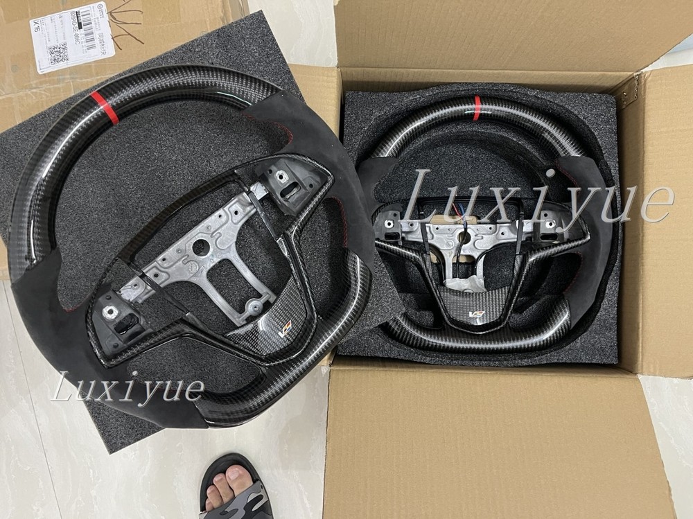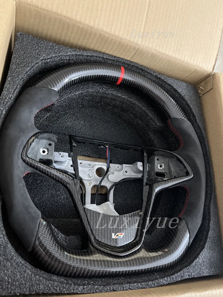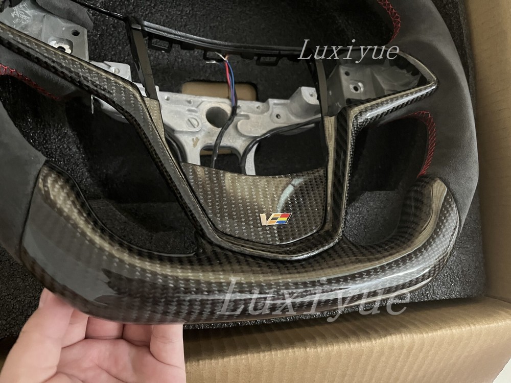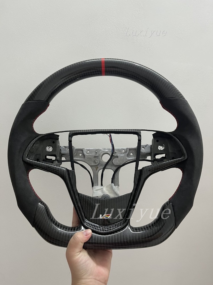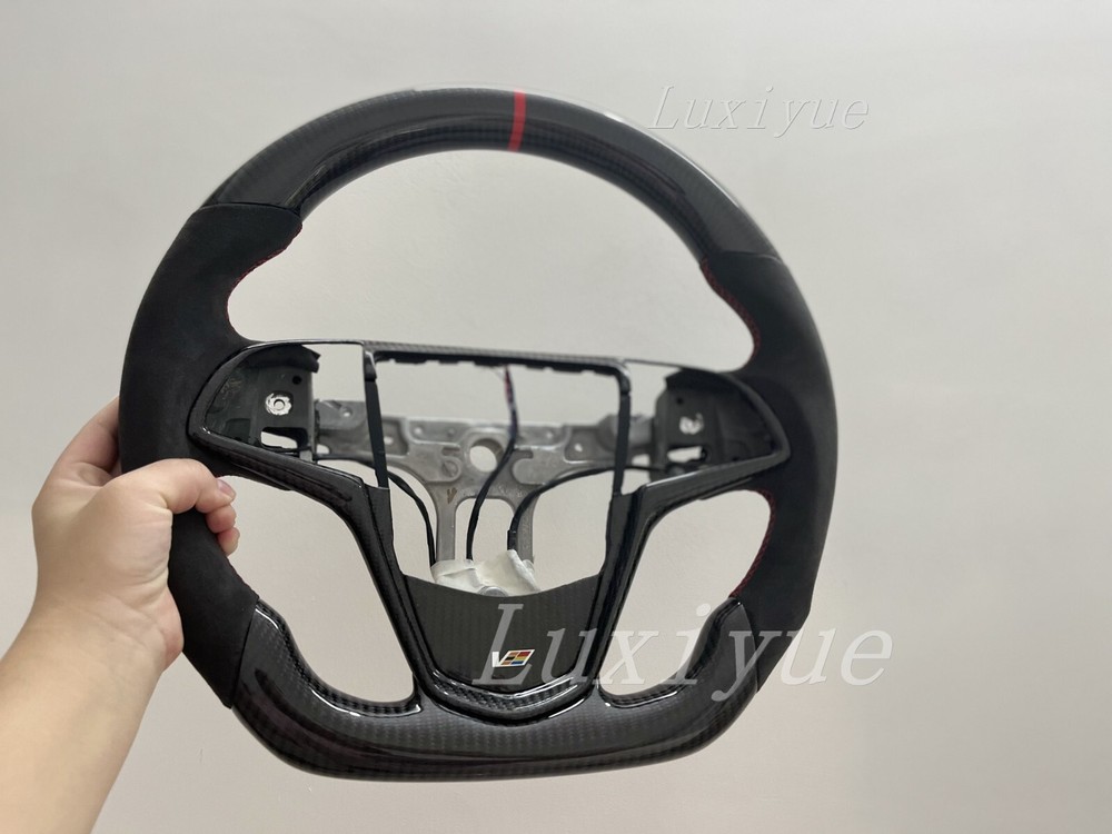 Fitment Fits for Cadillac CTS CTS-V ATS ATS-V 2014-2019 Stock Specifications: Condition: 100% Brand New Item Type: Carbon Fiber Steering Wheel Material: Real Carbon Fiber +alcantara Color: As Picture Shown Shape: Flat bottom D-type Racing Design Finger Grips: Yes Thumb Grips: No Paddle Cutouts: Yes (Paddles are not included) Heated: No Free customization options: 1. 12 O'clock/Top Stripe (color) 2. Grip Stitching (color) Paid customization options: 1. Carbon fiber material 2. Grip material, such as alcantara 3. Racing LED 4. Heating wire