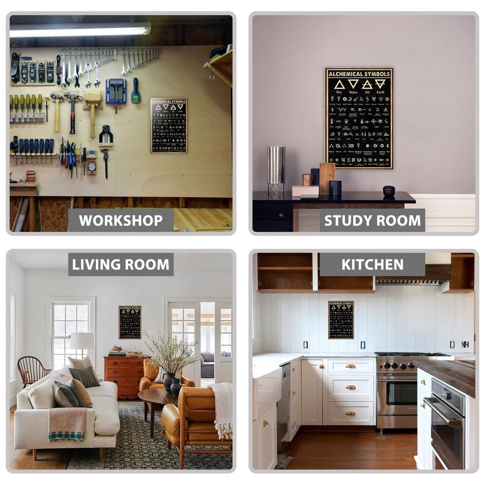 Love the unique vintage vibe this alchemy metal sign brings to my space! The sturdy tin material and rolled edges make it safe yet stylish—perfect for adding character to any room. The pre-drilled holes made hanging super easy, and the print has great detail. A cool, conversation-starting piece that elevates home decor effortlessly.
