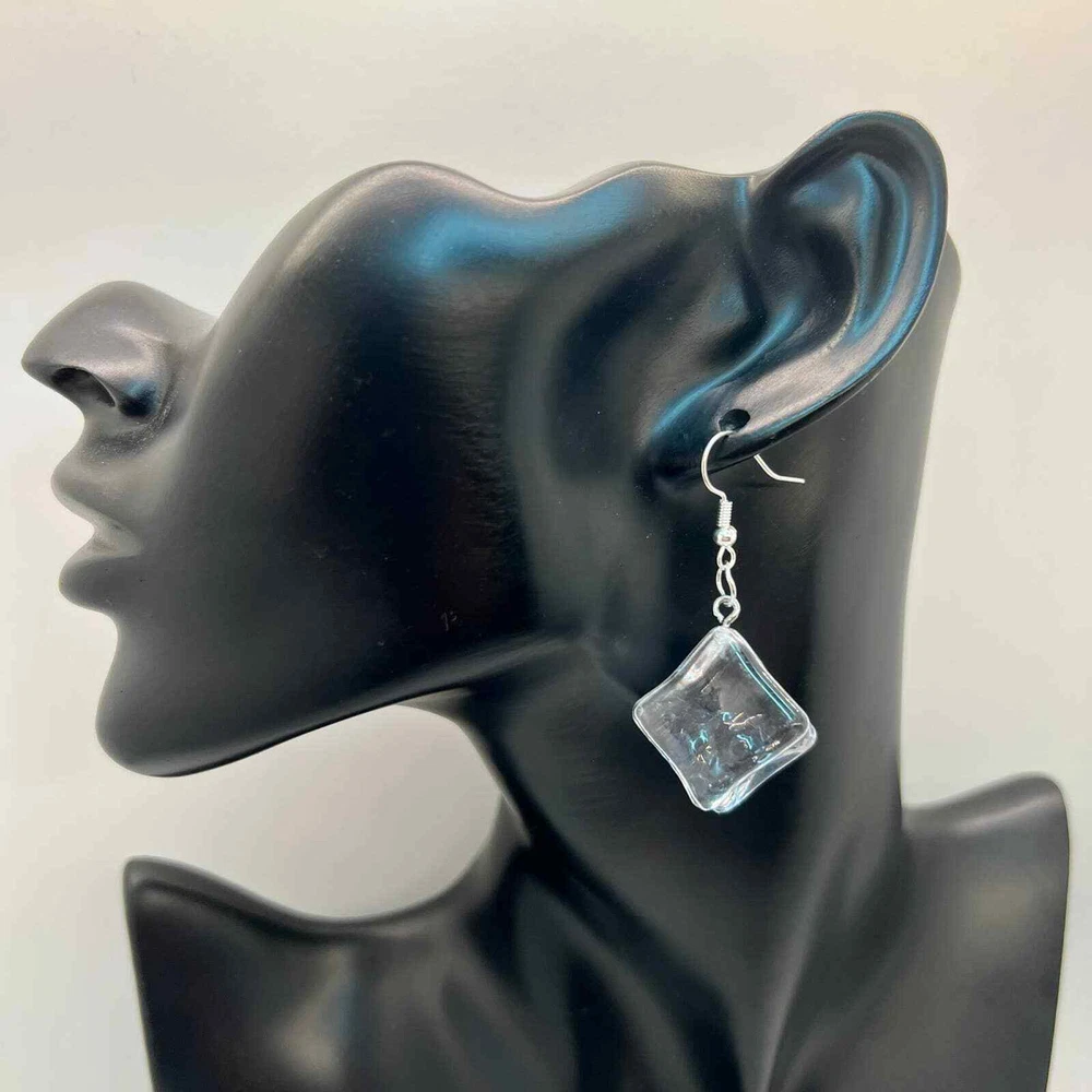 These earrings are made of plastic with metal hooks. Clip-on hooks are available upon request during checkout. All hooks are hypo-allergenic earring hooks made of copper plated 925 silver metal. All earrings are handmade and ship within 1-3 days of purchase.