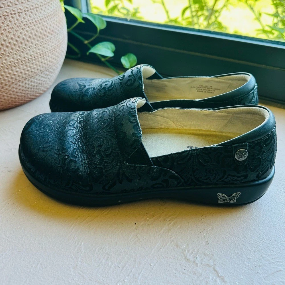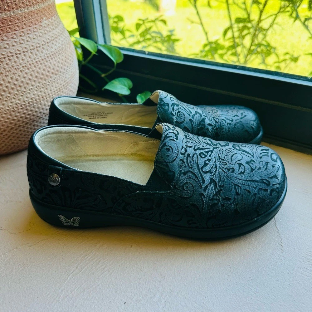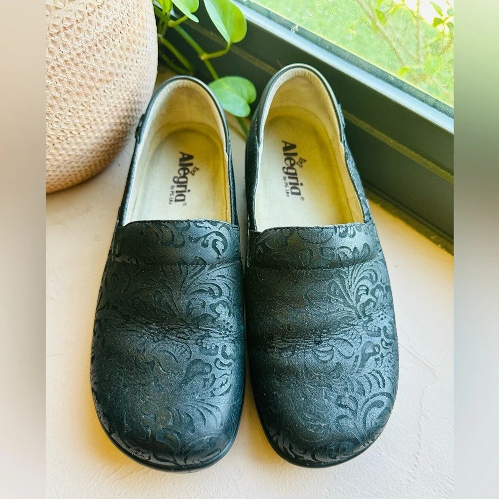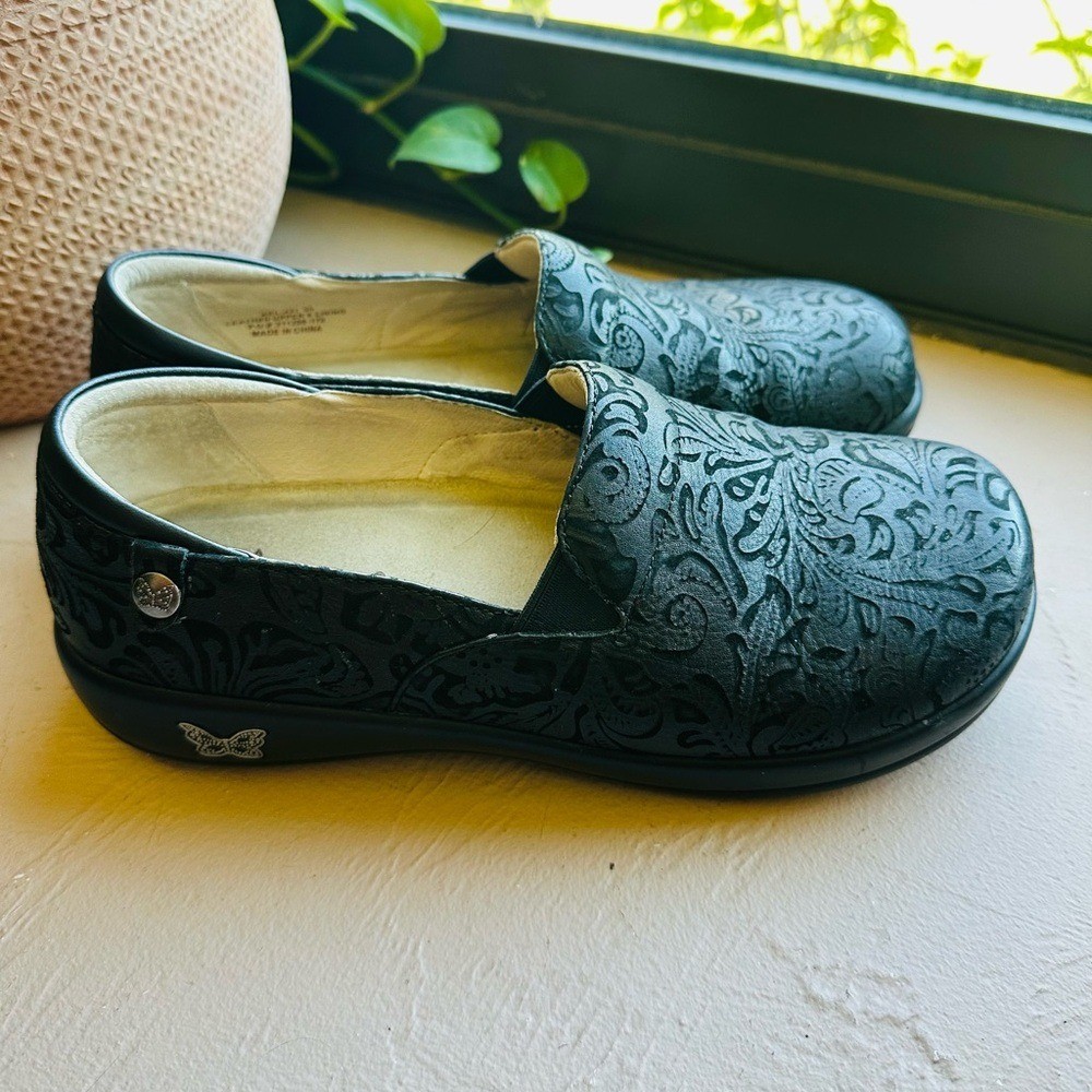 Master every task in slip-on shoes you don't even have to think about. The comfy Keli is built with a stain-resistant upper and slip-resistant outsole. From Alegria. Style: Keli Stain-resistant upper, slip-on style Removable footbed, slip-resistant outsole APMA Seal of Acceptance Approximately 1-1/2"H heel Leather upper; man-made balance Condition Preloved❤️ Smoke free home. I ship next day.