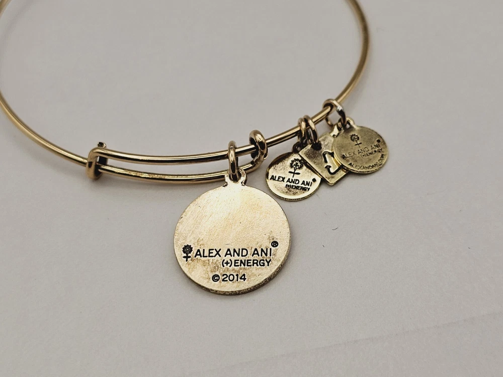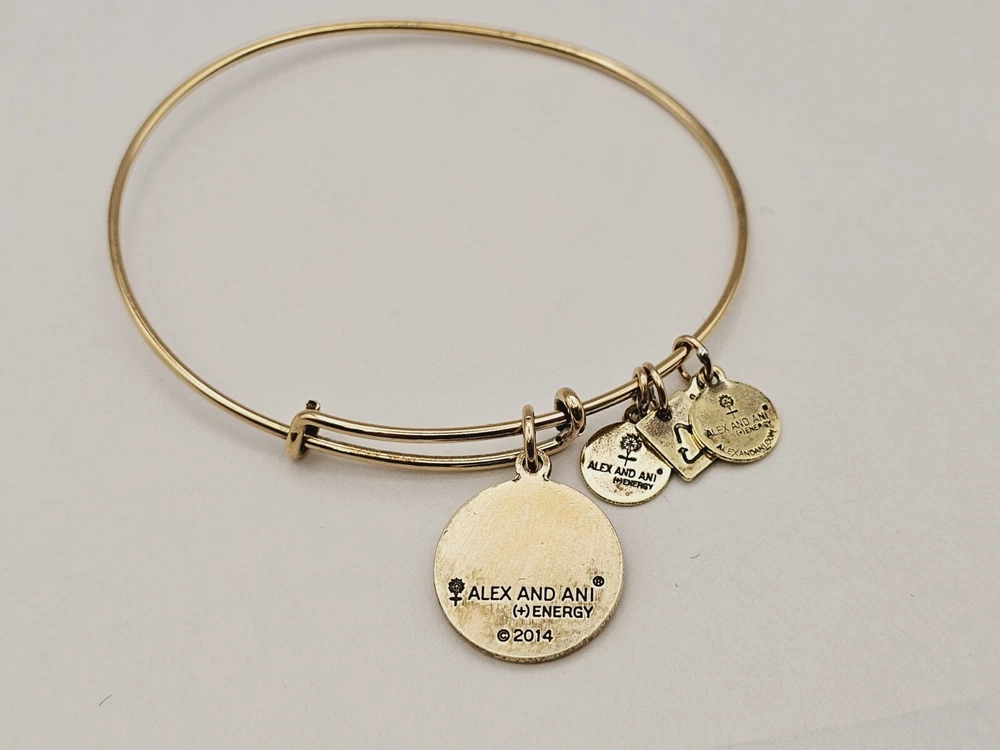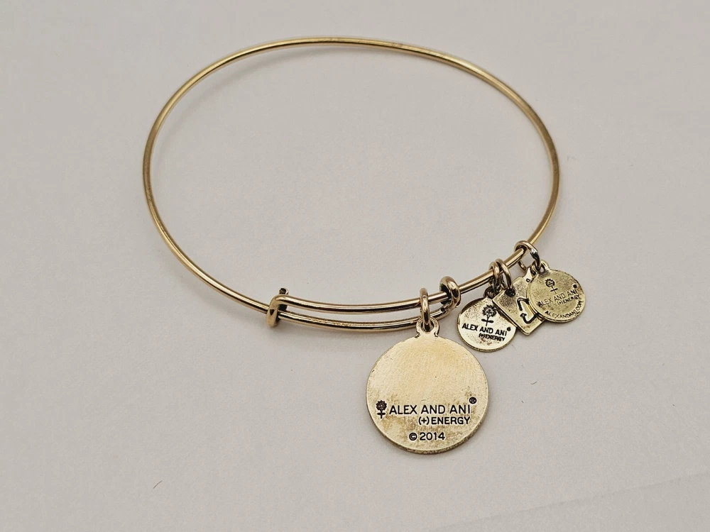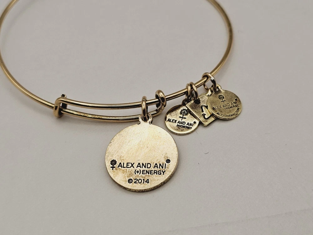 Country of Origin: United States Charm Type: Dangle Color: Gold Signed: Yes gtin13: Does Not Apply Closure: Slide Theme: Art, Awareness, Beach, Beauty, Family & Friends, Fashion & Costumes, Inspirational, Love, Signs & Symbols Brand: ALEX AND ANI Main Stone Creation: Natural Material: Metal Main Stone Shape: Round Chain Type: Wire Base Metal: Brass Style: Bangle, Charm Occasion: Anniversary, Birthday, Christening, Christmas, Engagement, Graduation, Mother's Day, Valentine's Day, Wedding, Confirmation/Communion, Father's Day, Everyday Type: Bracelet Personalization Instructions: N/A Metal: Multi-Tone Gold Plated UPC: Does Not Apply Number of Gemstones: 1 Shape: Round Sizable: Yes Features: Adjustable, Engraved, Reversible, Stackable Secondary Stone: No Stone Main Stone Color: Gold Country/Region of Manufacture: United States Main Stone: Gold MPN: Does Not Apply
