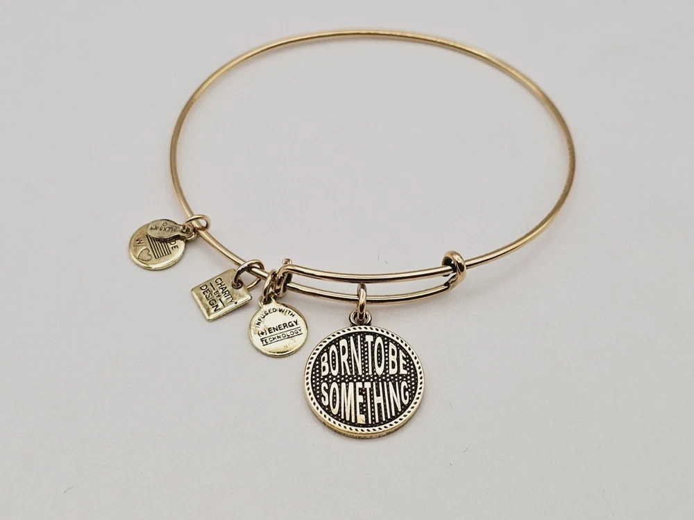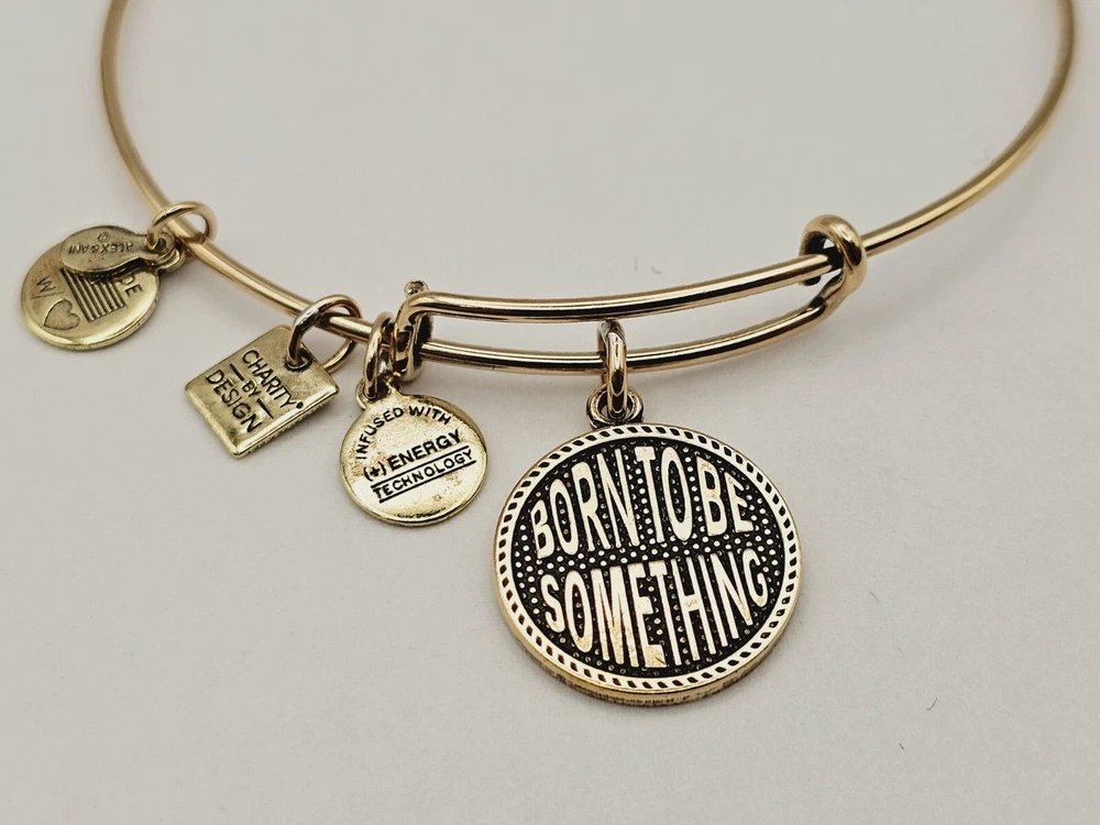 Alex & Ani Gold " Born To Be Something " πŸ˜€ Gold Charm Bangle Bracelet ✨️