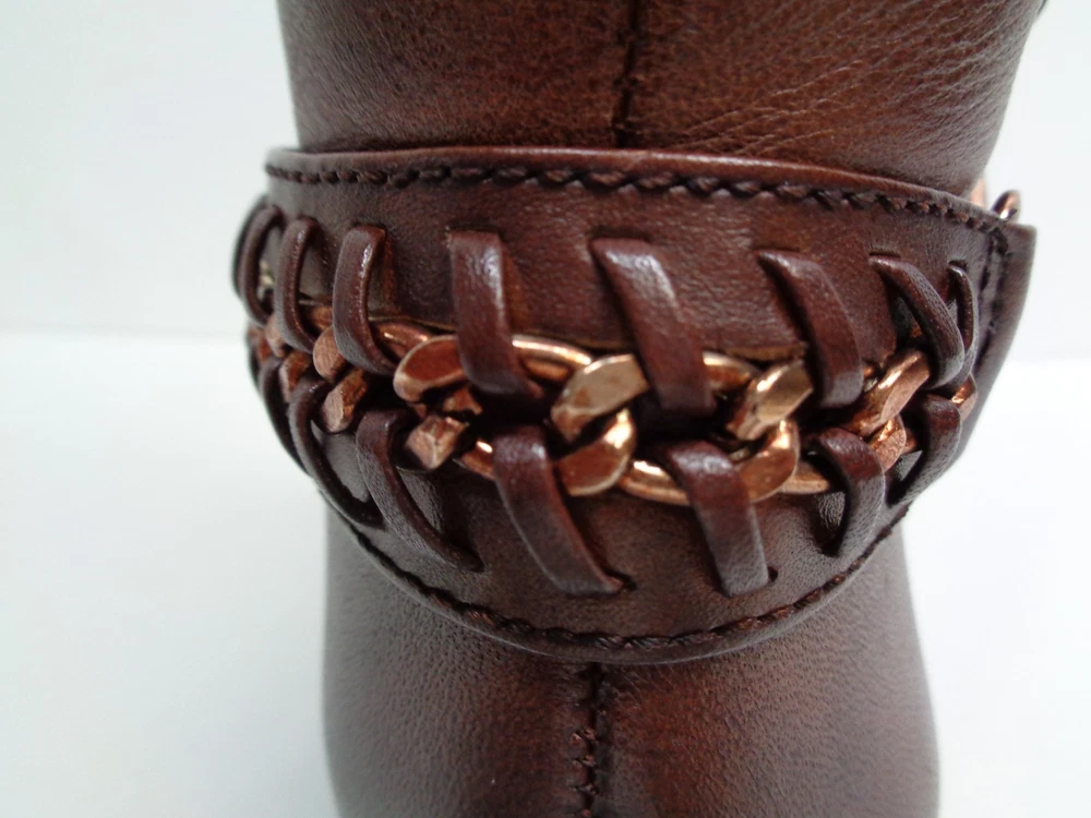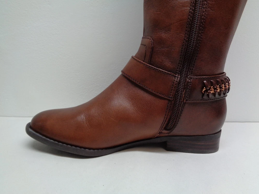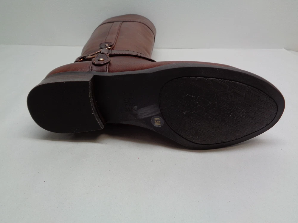 Alex Marie Size 5.5 M TAYLOUR Brown Leather Rider Boots New Womens Shoes -Style: TAYLOUR -Color: Brown -Leather upper -Fabric/ Man made lining -Man made outsole -Inner shaft zipper -Hardware is a gold color - Shaft height is approximately 15 inches -Heel height is approximately 1 inch -Top to bottom is approximately 16 inches -Boot opening is approximately 14 inches and flexible