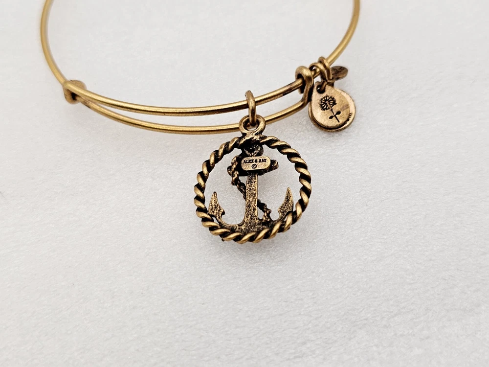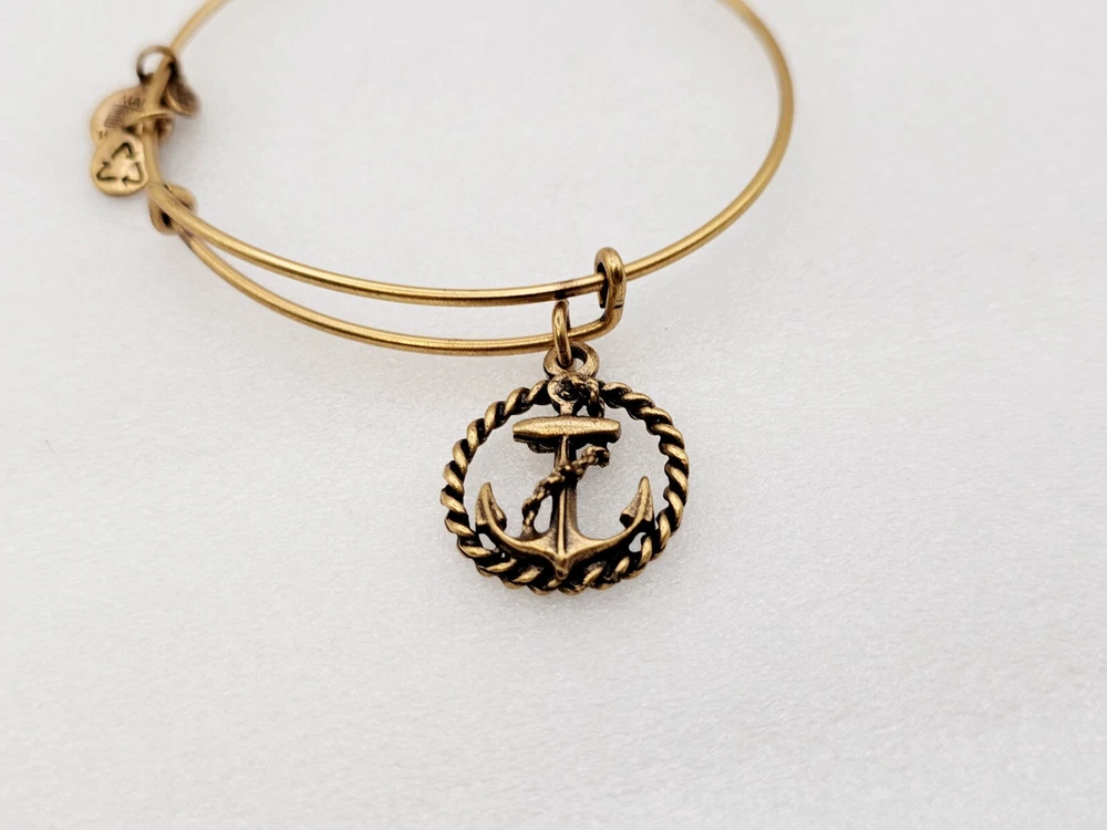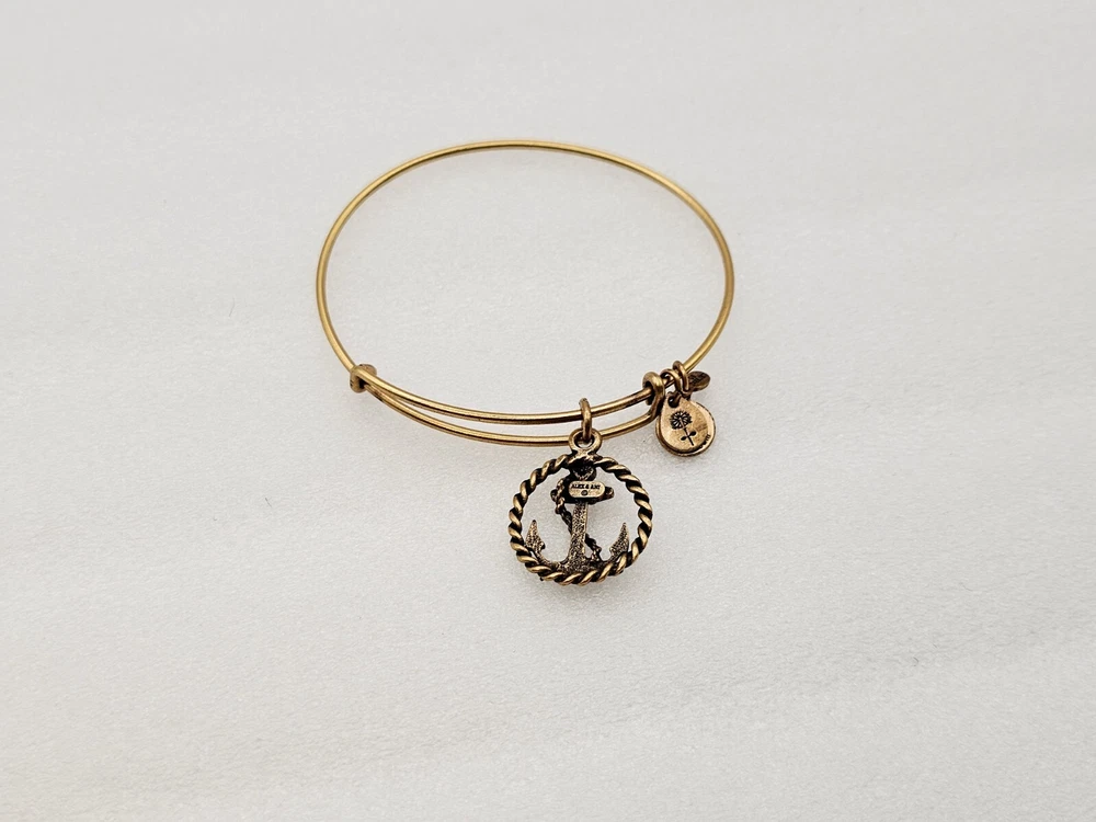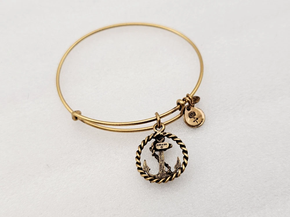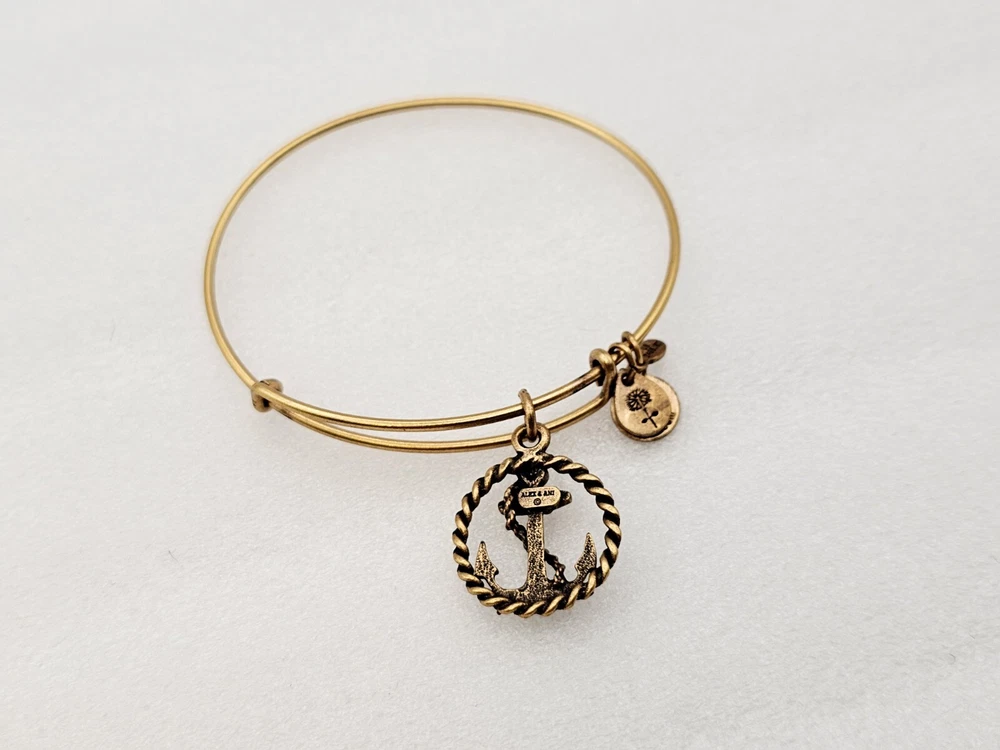 Alex and Ani Charm Bangle Bracelet Gold in color β¨οΈπ Condition is Pre-owned This one is in good condition . Take a look at the pictures for more details. Comes as shown in the photos. Will ship item via USPS Standard Ground Advantage mailing in a padded shipping envelope. I reserve the right to cancel any sale or bid due to late payment . If you need more pictures or info feel free to send me a email. We also offer combined shipping to help reduce shipping costs for multiple pieces . Usually 5 pieces on average in one shipping package is around 5 dollars for all to ship to your home or business. Thanks for looking β¨οΈβΊοΈπ
