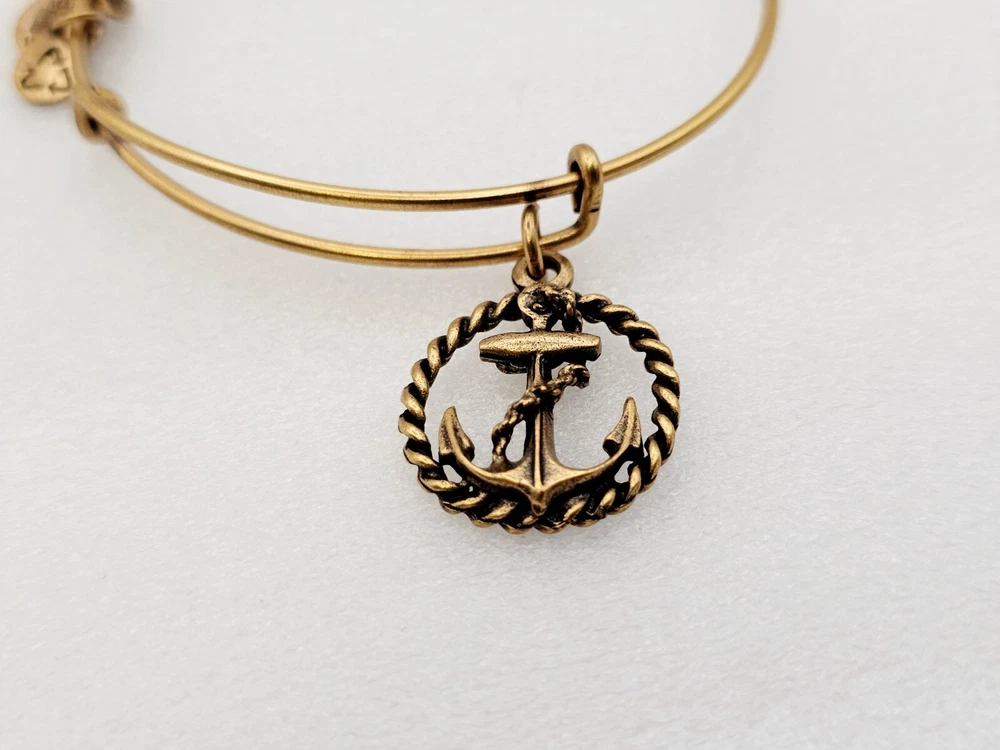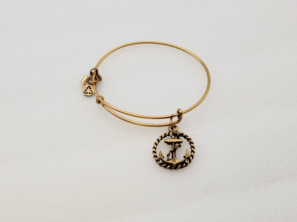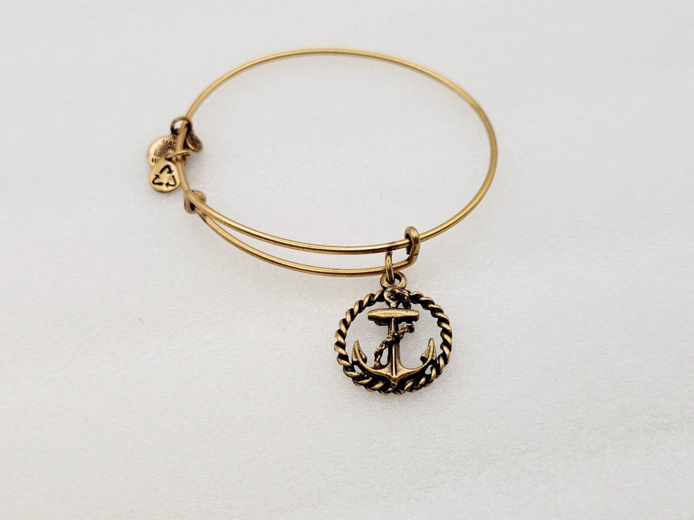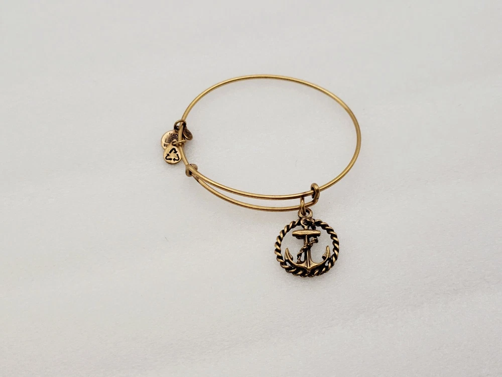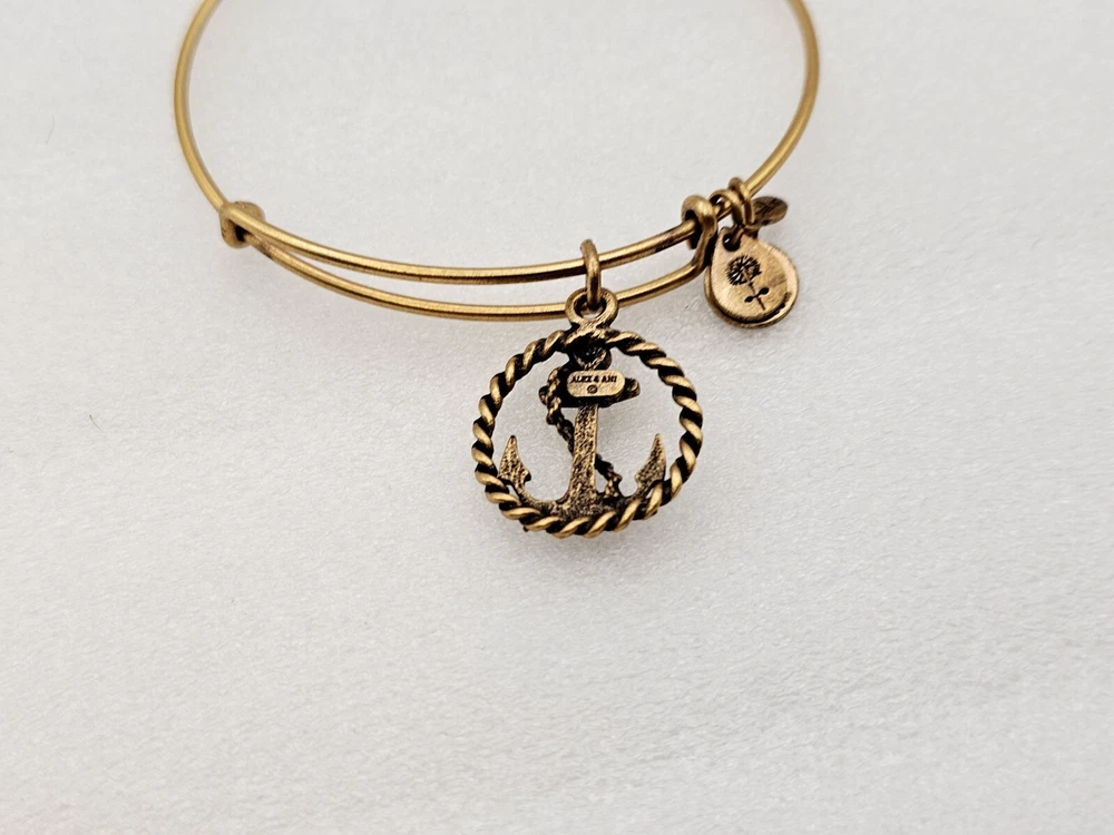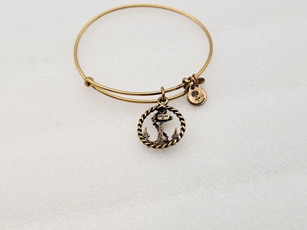 Alex and Ani Charm Bangle Bracelet Gold in color β¨οΈπ Condition is Pre-owned This one is in good condition . Take a look at the pictures for more details. Comes as shown in the photos. Will ship item via USPS Standard Ground Advantage mailing in a padded shipping envelope. I reserve the right to cancel any sale or bid due to late payment . If you need more pictures or info feel free to send me a email. We also offer combined shipping to help reduce shipping costs for multiple pieces . Usually 5 pieces on average in one shipping package is around 5 dollars for all to ship to your home or business. Thanks for looking β¨οΈβΊοΈπ