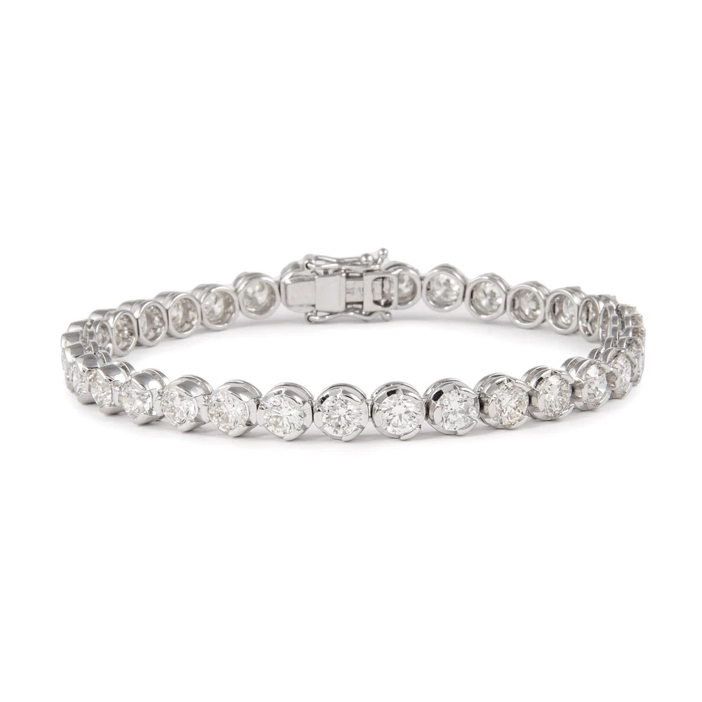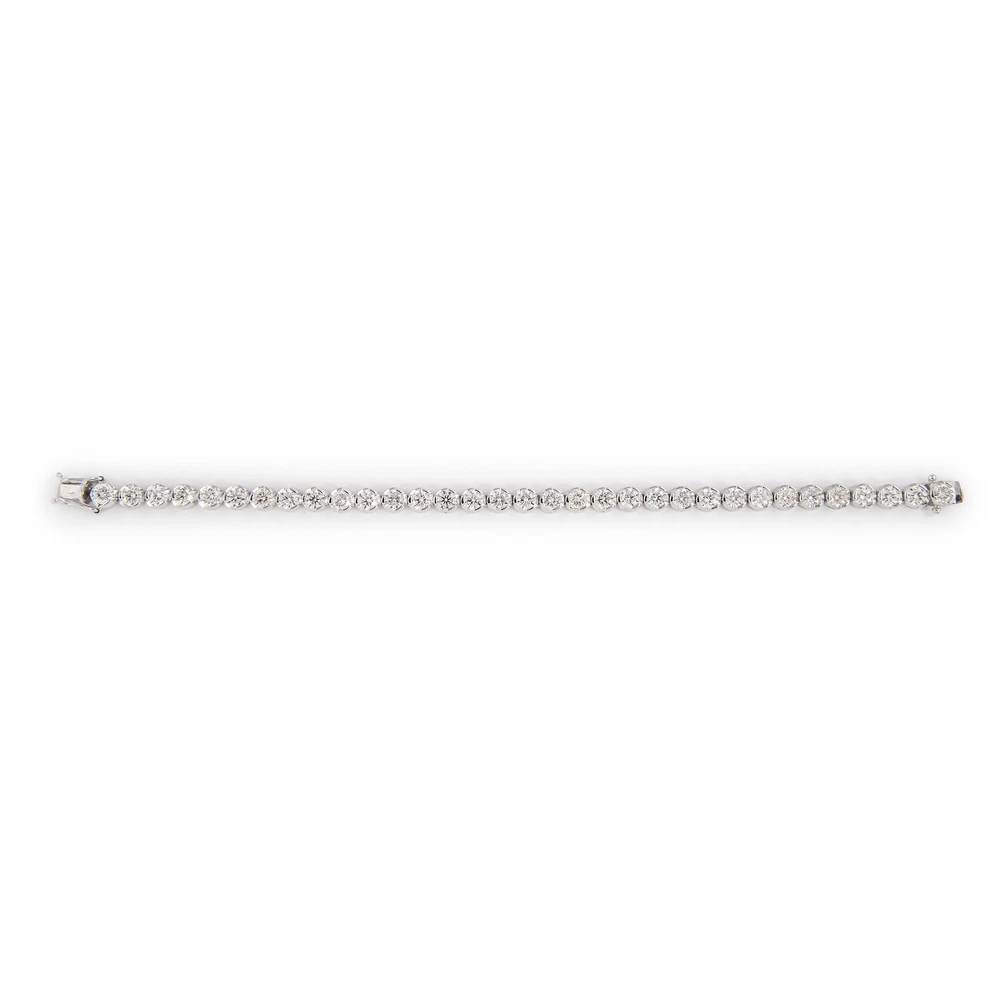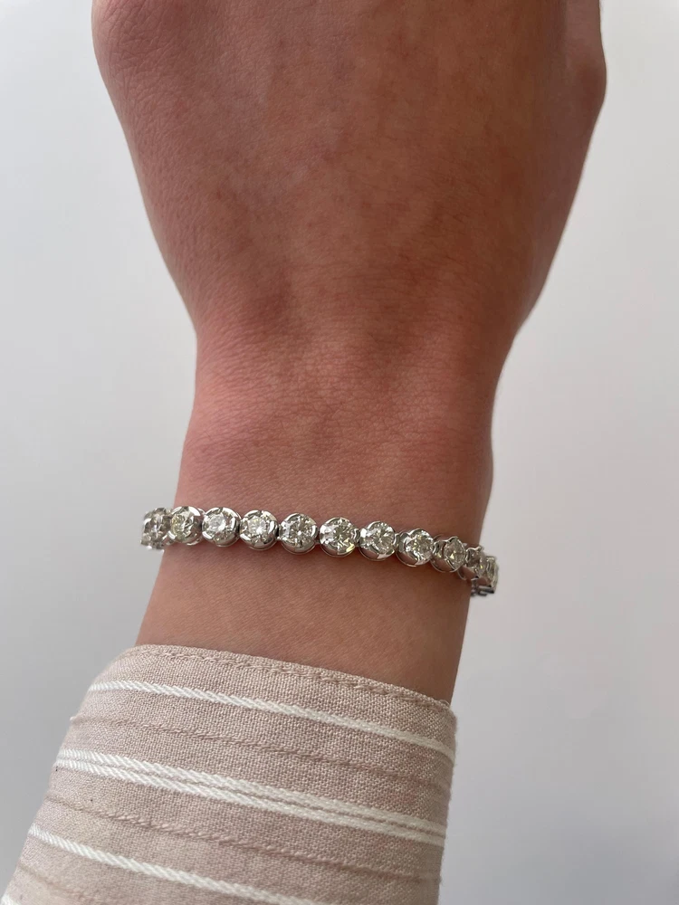 Exquisite and timeless illusion set diamonds tennis bracelet, by Alexander Beverly Hills. 33 round brilliant diamonds, 10.14 carats total. Approximately G/H color and VS clarity. Four prong set in 18k white gold, 16.42 grams, 7.25 inches. Accommodated with an up-to-date digital appraisal by a GIA G.G. once purchased, upon request. Please contact us with any questions. Item Number MP090