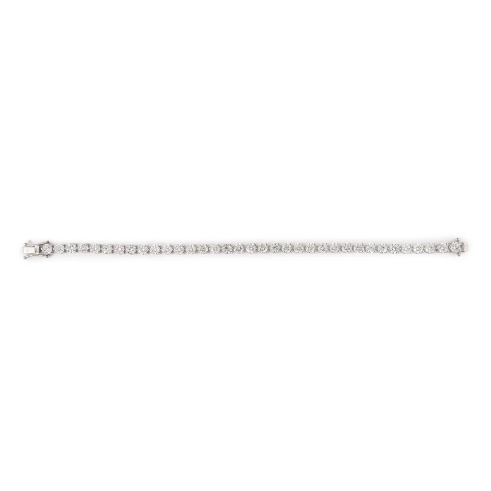 Beautiful and classic diamond tennis bracelet, by Alexander Beverly Hills. 35 round brilliant diamonds, 10.85 carats. Approximately E/F color and SI1 clarity. 14k white gold, 12.27 grams, three prong set, 7in. Accommodated with an up-to-date digital appraisal by a GIA G.G. once purchased, upon request. Please contact us with any questions. Item Number MP094