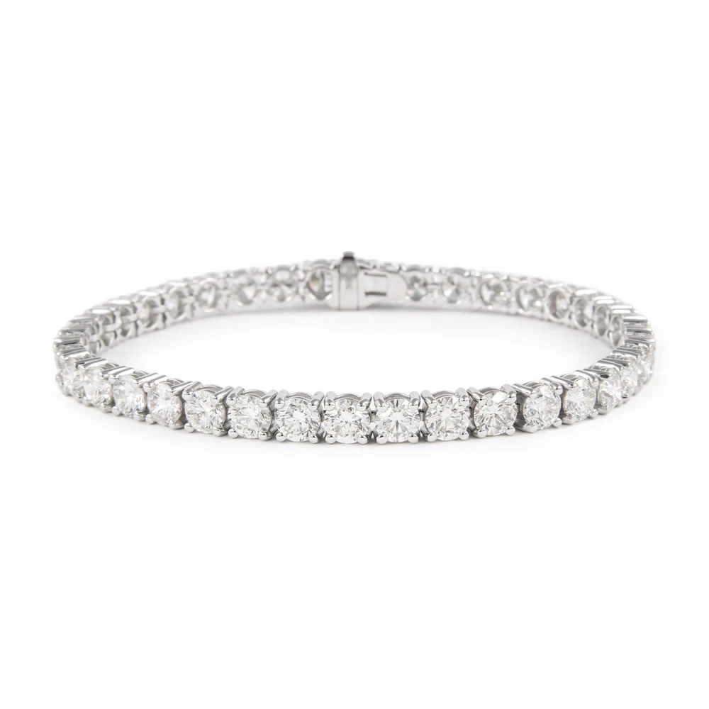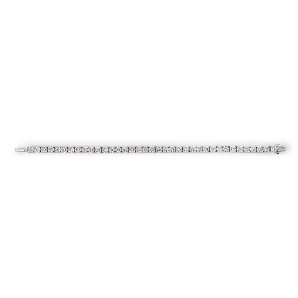 Exquisite and timeless diamonds tennis bracelet, by Alexander Beverly Hills. 38 round brilliant diamonds, 10.95 carats. Approximately F/G color and VS2/SI1 clarity. Four prong set in 18k white gold, 14.21 grams, 7 inches. Accommodated with an up-to-date digital appraisal by a GIA G.G. once purchased, upon request. Please contact us with any questions. Item Number MD075