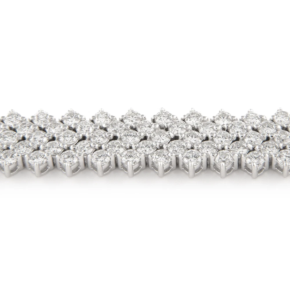 Exquisite and timeless five row diamonds tennis bracelet, by Alexander Beverly Hills. 213 diamonds total, 12.71 carats total. Approximately F-G color and VS clarity. 31.72 grams, 18k white gold, 7 inches. Accommodated with an up-to-date digital appraisal by a GIA G.G. once purchased, upon request. Please contact us with any questions. Item Number MS058