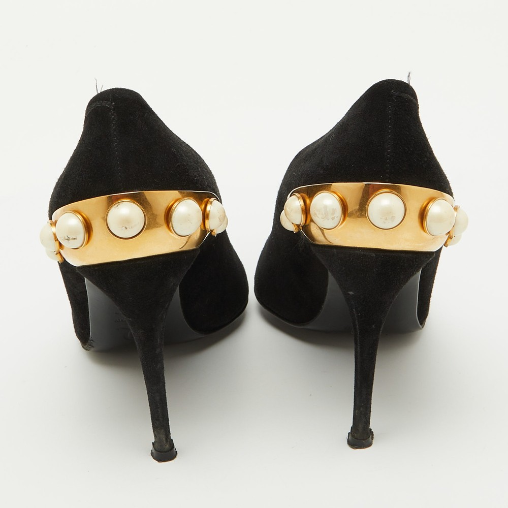 Make a chic style statement with these designer pumps. They showcase sturdy heels and durable soles, perfect for your fashionable outingsCertified by The Luxury Closet - This item has gone through a detailed authentication process overseen by our experts. We offer a lifetime guarantee of authenticity on all our items. Import duties, taxes and charges are not included in the item price. These charges are the buyers responsibility. Please check with your country’s customs office to determine what these additional cost will be prior to buying. Our eBay Store About Us Contact Us Add to Favorite Sellers Alexander McQueen Black Suede Gold Trimmed Faux Pearl Pumps Size 39 $203.5 Make a chic style statement with these designer pumps. They showcase sturdy heels and durable soles, perfect for your fashionable outings Product Details Brand Color Black Dimensions Material Suede Size 39 Outsole Width 8.5 cm Outsole Length 25 cm Heel Height 10.5 cm Includes The Luxury Closet Packaging Certified by The Luxury Closet This item has gone through a detailed authentication process overseen by our experts. We offer a lifetime guarantee of authenticity on all our items. How We Check The in-house team of experts at The Luxury Closet is highly trained to verify the authenticity and the condition of the luxury products. They ensure that only 100% authentic items are put on sale.The evaluation process is unique with its own mix of assessment criteria and differs according to the category. Each item is evaluated based on the following combination of hallmarks, hardware, stitching, symmetry, material, craftsmanship, stamping, codes, hologram stickers, and packaging. Our authenticators also check if the items have been modified or amended (e.g., aftermarket diamonds, replaced batteries, repaired bags, etc.) International Buyers Import duties, taxes and charges are not included in the item price. These charges are the buyers responsibility. Please check with your country’s customs office to determine what these additional cost will be prior to buying.