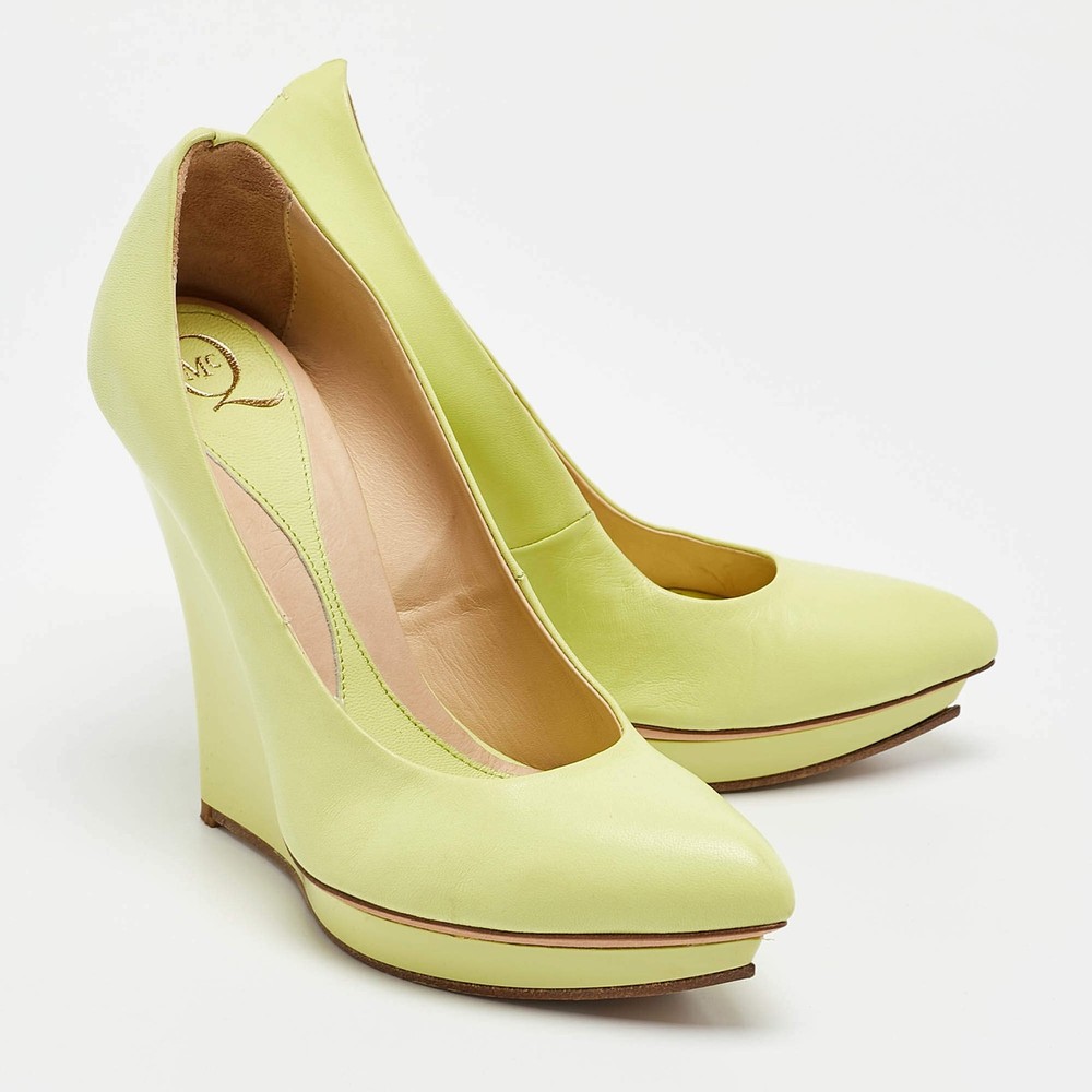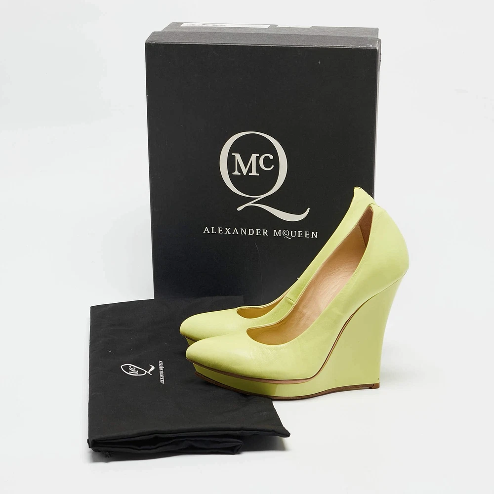 Our eBay Store About Us Contact Us Add to Favorite Sellers Alexander McQueen Neon Green Leather Wedge Pumps Size 37 Make a chic style statement with these designer pumps. They showcase sturdy heels and durable soles, perfect for your fashionable outings! Product Details Brand Alexander McQueen Color Green Includes Original Dustbag, Original Box Outsole Length 22 cm Outsole Width 6 cm Size 37 Certified by The Luxury Closet This item has gone through a detailed authentication process overseen by our experts. We offer a lifetime guarantee of authenticity on all our items. How We Check The in-house team of experts at The Luxury Closet is highly trained to verify the authenticity and the condition of the luxury products. They ensure that only 100% authentic items are put on sale.The evaluation process is unique with its own mix of assessment criteria and differs according to the category. Each item is evaluated based on the following combination of hallmarks, hardware, stitching, symmetry, material, craftsmanship, stamping, codes, hologram stickers, and packaging. Our authenticators also check if the items have been modified or amended (e.g., aftermarket diamonds, replaced batteries, repaired bags, etc.) International Buyers Import duties, taxes and charges are not included in the item price. These charges are the buyers responsibility. Please check with your country’s customs office to determine what these additional cost will be prior to buying.