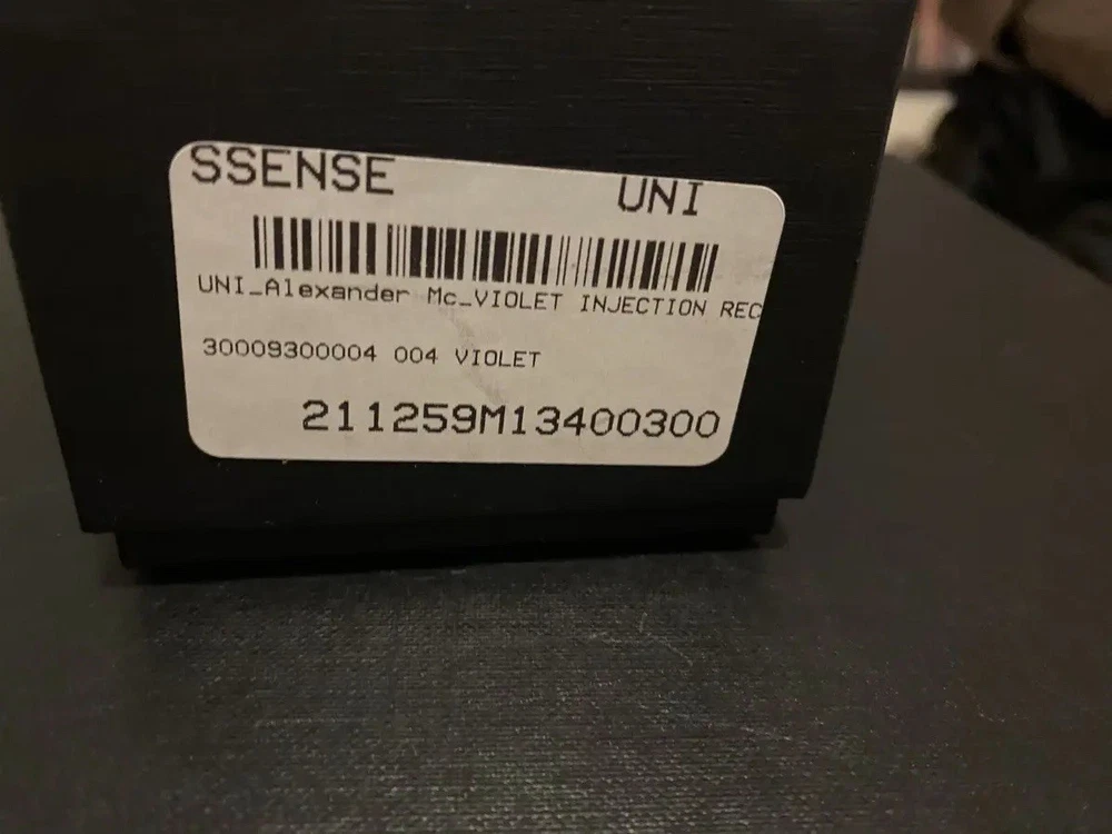 Barely worn, in perfect, clean condition The Alexander McQueen Purple Square Violet Injection Sunglasses from SSENSE are designer sunglasses with a square frame in a rich purple color. They offer UV400 protection and have a magnification strength of -1. These unisex sunglasses are a stylish and fashionable accessory for both men and women, adding a touch of designer flair to any outfit. With a bold square shape and high-quality materials, these sunglasses are a must-have for those looking for a statement piece to elevate their look.
