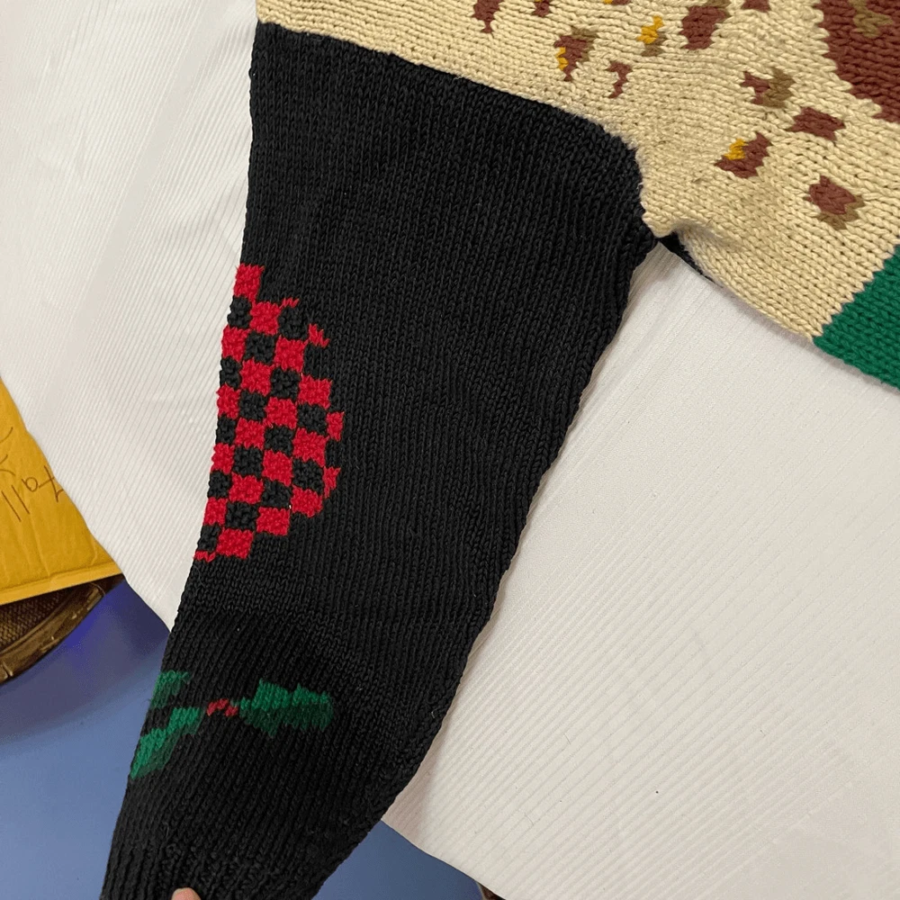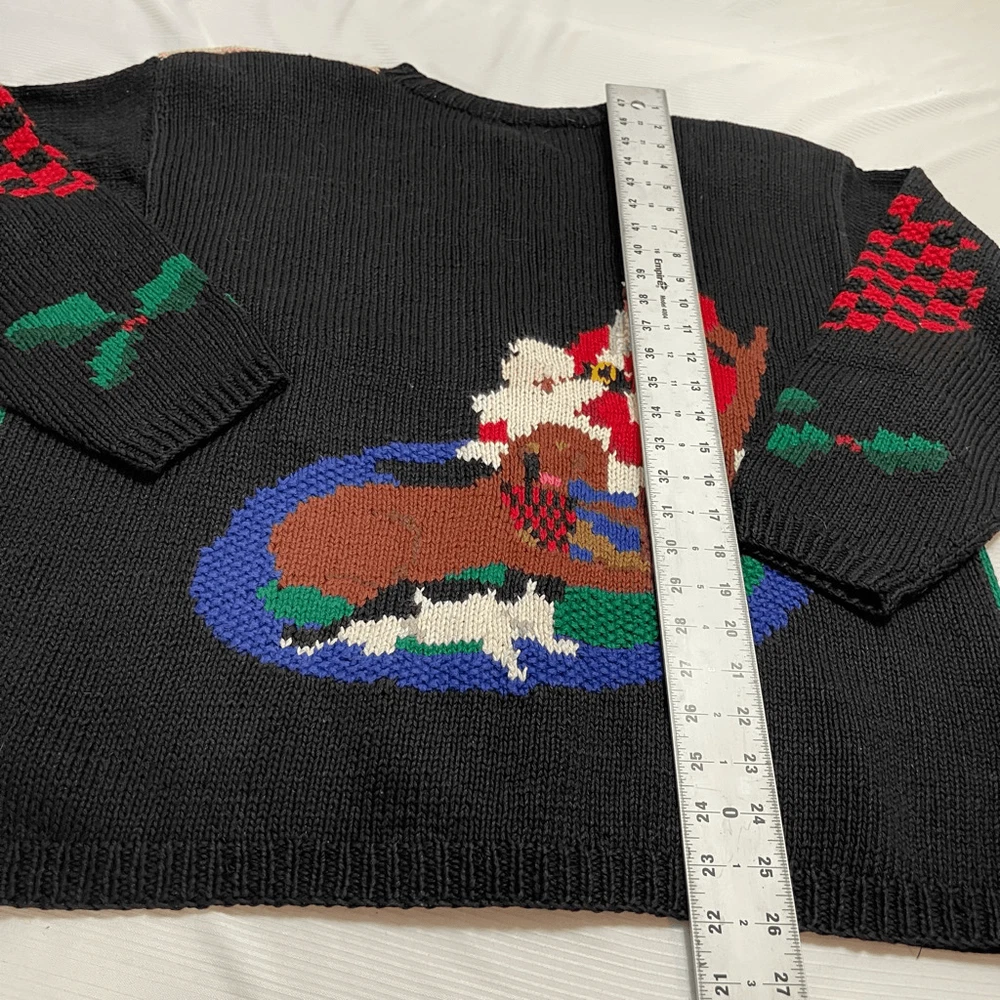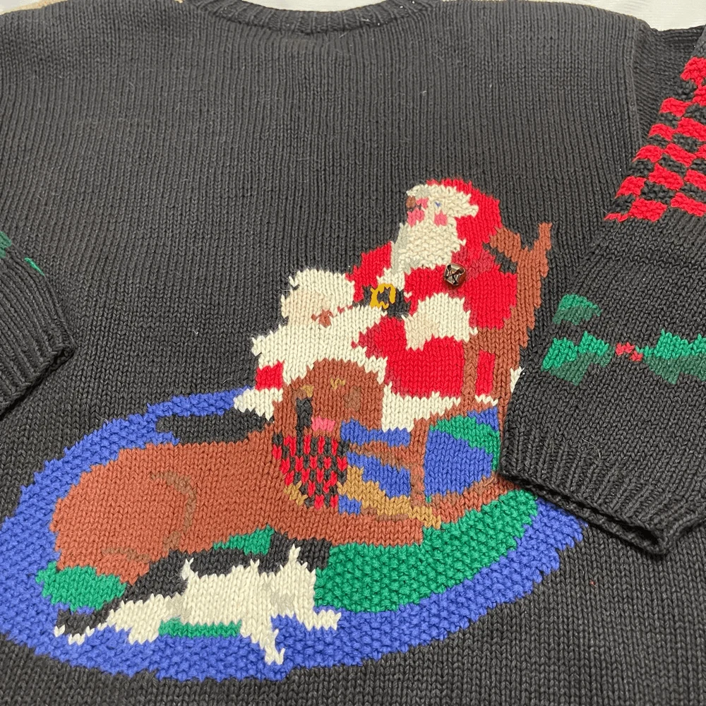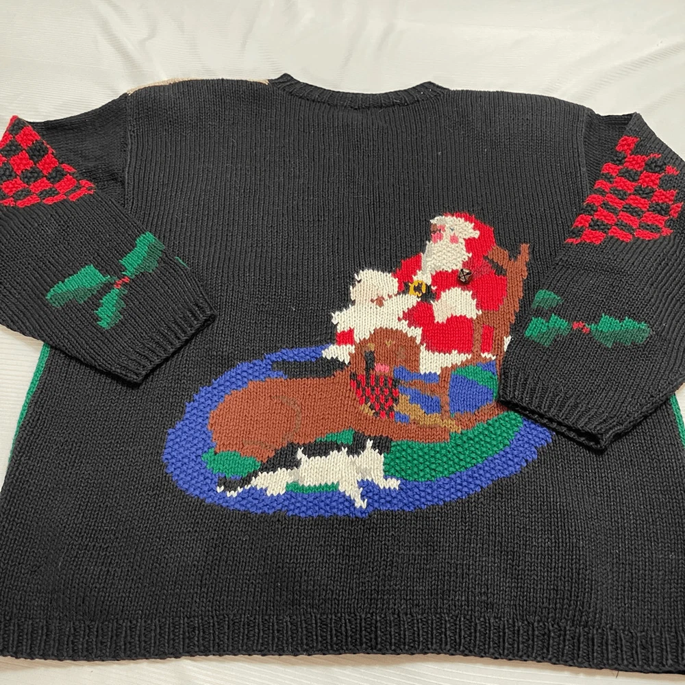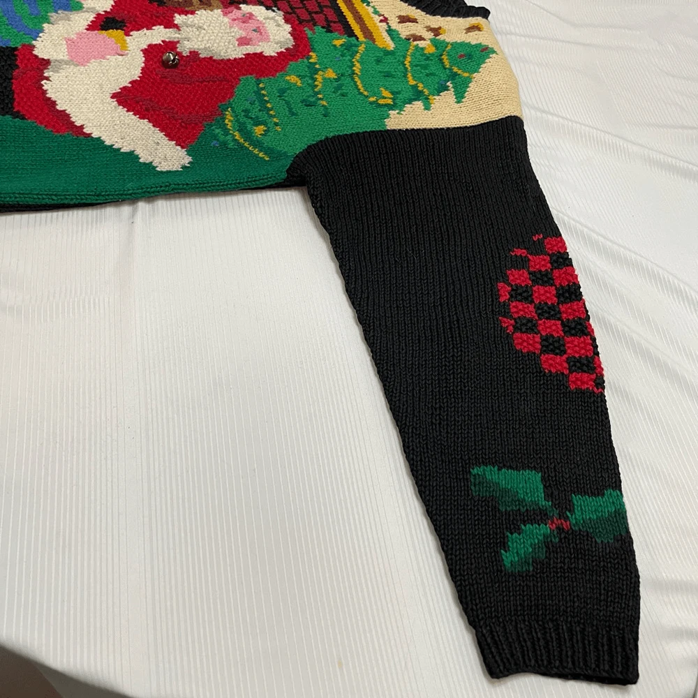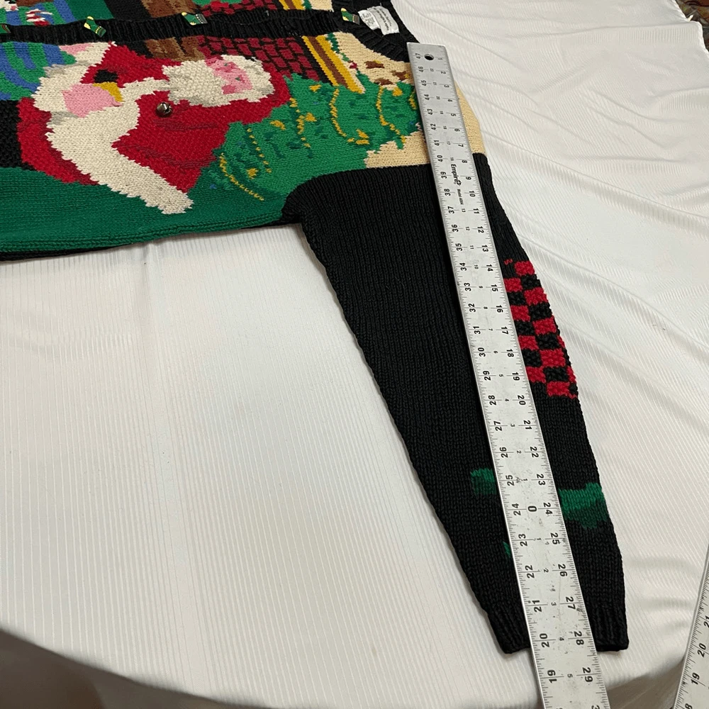 Alexandra Bartlett Eagles Eye VTG Santa Sweater Cardigan Plus Size 1X Missing a button May have some stains or wear since it’s a rare vintage piece please see all photos See photos for measurements 55% ramie 45% cotton