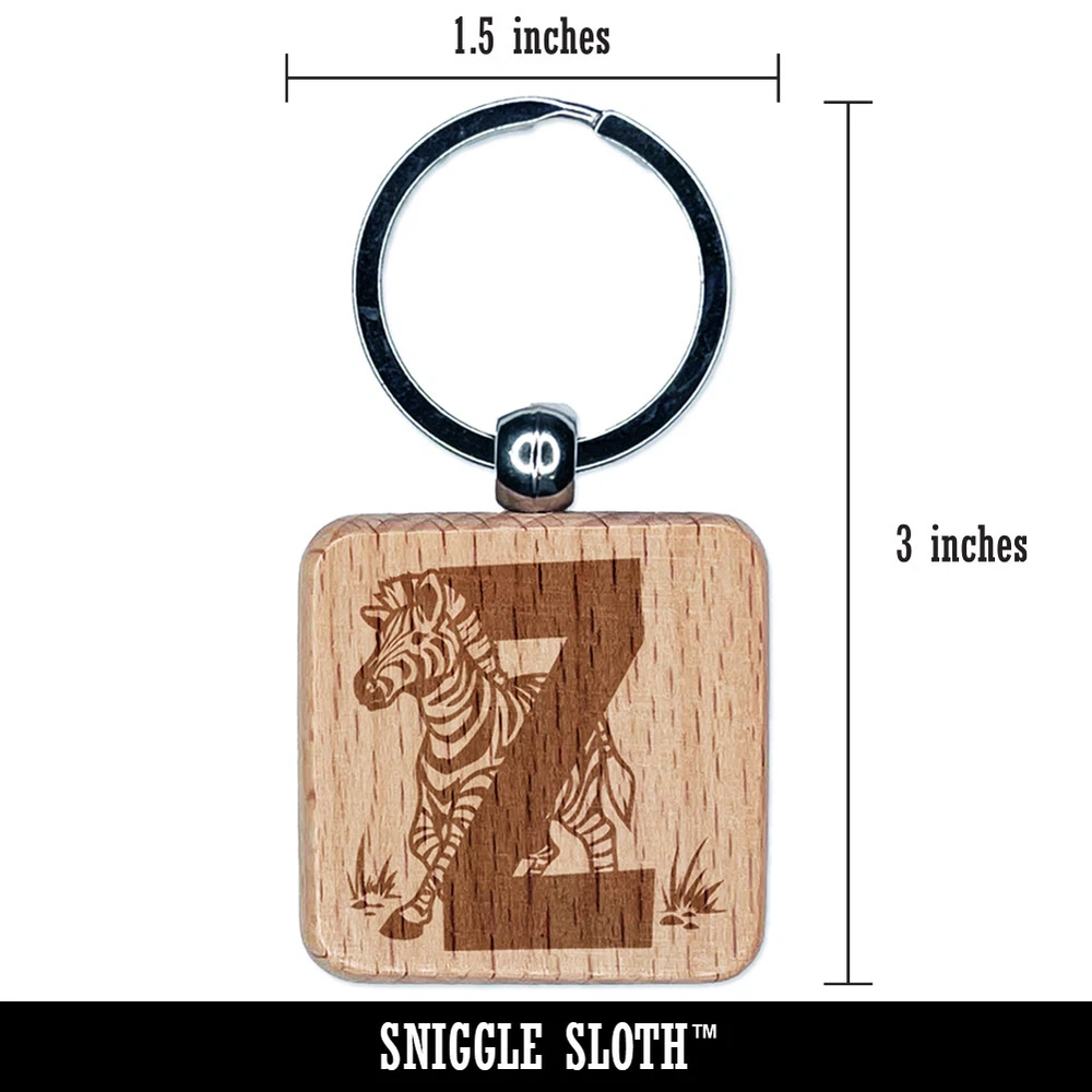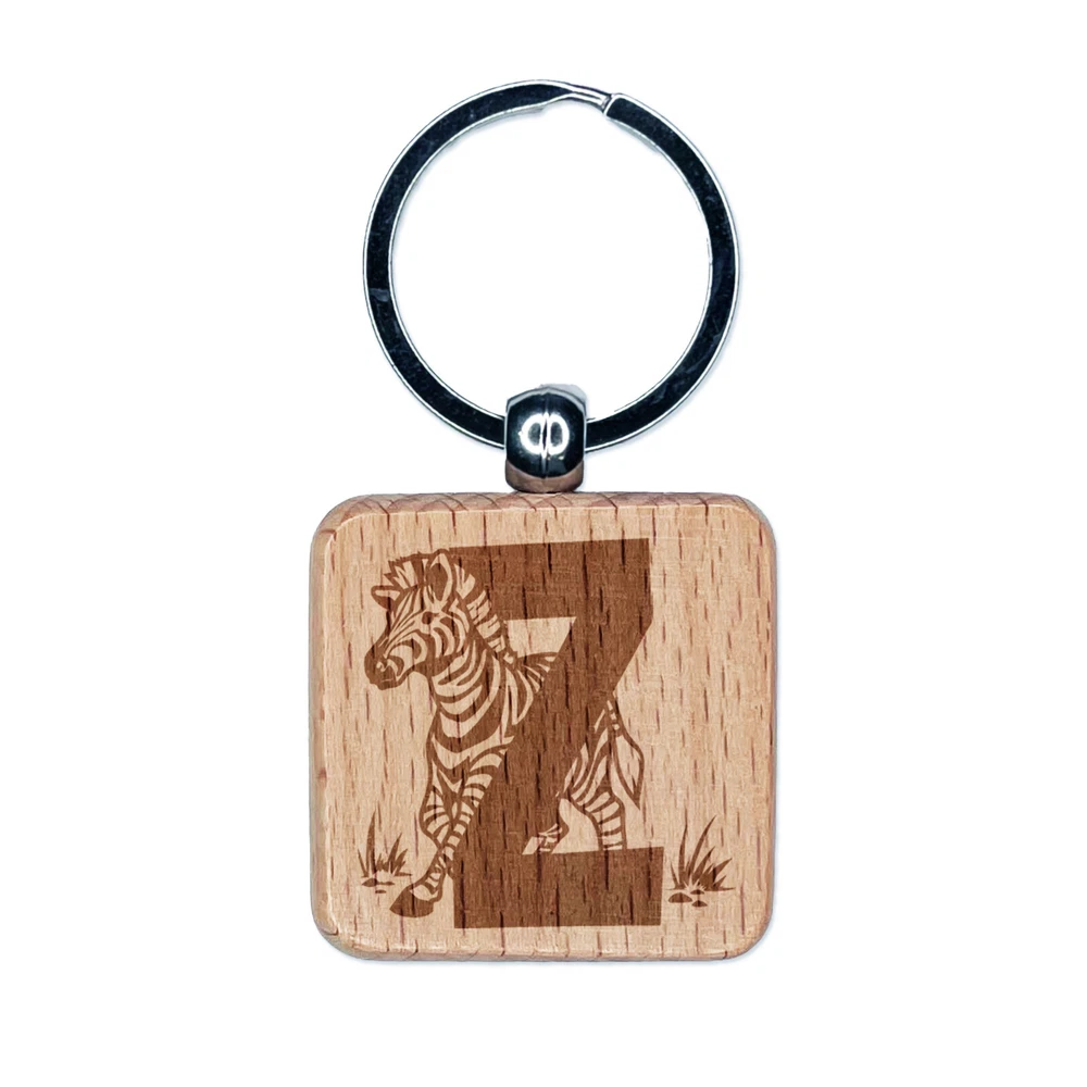 Alfabeto animal letra Z para cebra grabado madera cuadrado llavero etiqueta dije