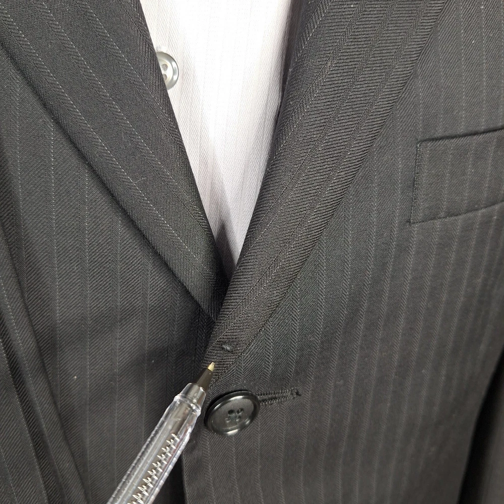 Alfani 2 Piece Suit Mens 40R 34X32 Black Stripe 3 Button Ventless Wool Canada
