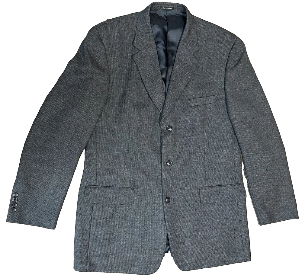 Elevate your style with this sophisticated vintage Alfani blazer. Crafted from high-quality new wool, this textured solid blue blazer is perfect for any occasion, whether it be a wedding, party, or business meeting. The blazer features a notch lapel style, four-button sleeve buttons, and a ventless design. With inner pockets and shoulder pads, this blazer not only looks great but is also functional. The blazer is pre-owned but has been well-maintained and is in good condition. Available in size 44 Long this classic fit blazer is perfect for any man looking to add a touch of elegance to his wardrobe. CONDITION Preowned Good condition It has a tiny FLAW in the upper back shoulder See pictures for details and measurements Please contact us with any questions or concerns. Thanks!