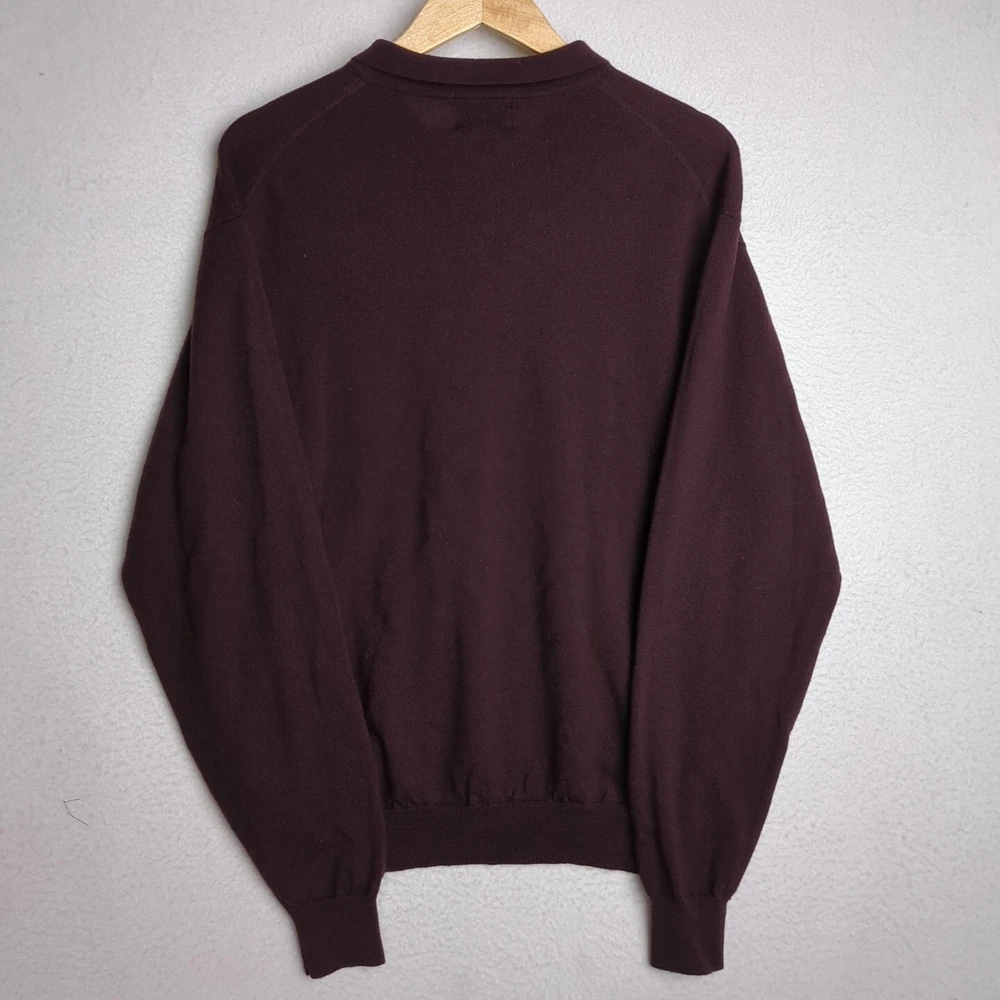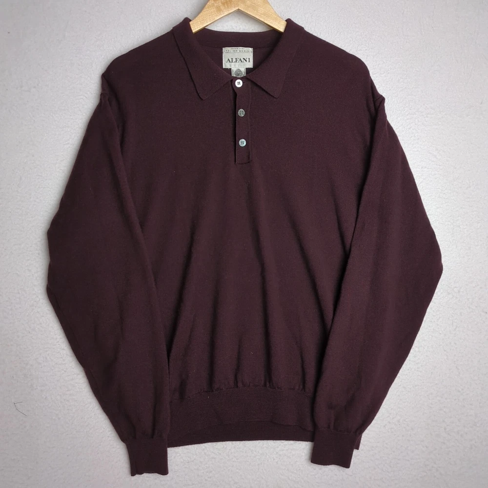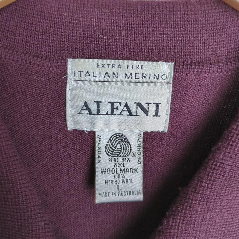 Alfani Italian Merino 100% Wool Mens Large Burgundy 1/4 Button Long Sleeve Shirt. Condition is Pre-owned. Shipped with USPS Ground Advantage.