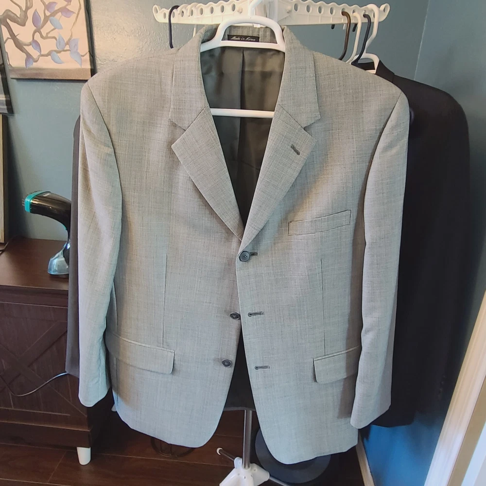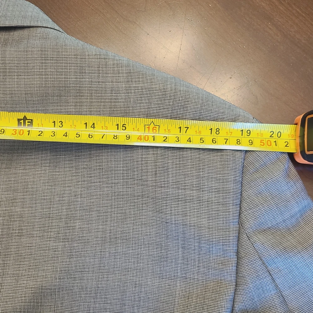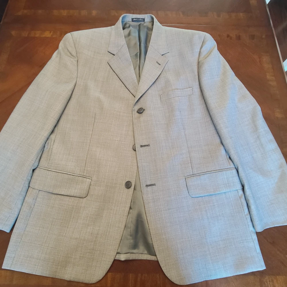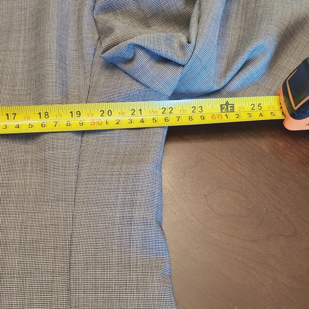 Product Overview Upgrade your wardrobe with this Alfani light gray houndstooth blazer , a sophisticated and versatile piece perfect for both professional and semi-formal occasions. Made from a luxurious wool blend with cashmere , this blazer provides softness, warmth, and durability. With its classic three-button front and structured design , it delivers an elegant and polished look. Made in Korea , this high-quality piece ensures premium craftsmanship. Key Features Brand: Alfani Style: Single-Breasted Blazer Size: 42S Color: Light Gray Pattern: Houndstooth Material: 87% Wool, 8% Cashmere, 5% Polyester Lining: Fully Lined (Gray) Measurements (Approximate): Chest (Pit to Pit x2): ~44 inches Length (Collar to Bottom): ~30 inches Sleeve Length: ~24.5 inches Shoulder Width: ~19 inches Closure: Three-Button Front Lapel Style: Notch Lapel Vent Style: Single-Vent Back Pockets: All Pockets Are Fully Functional (Exterior & Interior) Fabric Type: Wool - Cashmere - Polyester Care Instructions: Dry Clean Only Made in: Korea Condition Pre-owned in excellent condition , showing minimal signs of wear. No visible stains, rips, or damage. Please review photos for an accurate representation of the item's condition. Why It's Desirable Luxurious Fabric Blend: Wool and cashmere ensure durability, softness, and warmth. Timeless Design: Classic light gray houndstooth pattern adds sophistication to any outfit. Versatile Wear: Perfect for business, weddings, or stylish casual looks. Reputable Brand: Alfani is known for well-tailored, high-quality menswear. Package Includes ✅ Alfani Light Gray Houndstooth Blazer - Size 42S Disclaimer ⭐ Shop & Save: Browse my store for more great finds across various categories! Combine items to save on shipping. ⭐ Fast Shipping: Items are shipped same or next business day once payment is received. ⭐ Condition Transparency: Please review photos and description for details. Colors may vary slightly due to screen settings. ⭐ Pet & Smoke-Free Storage