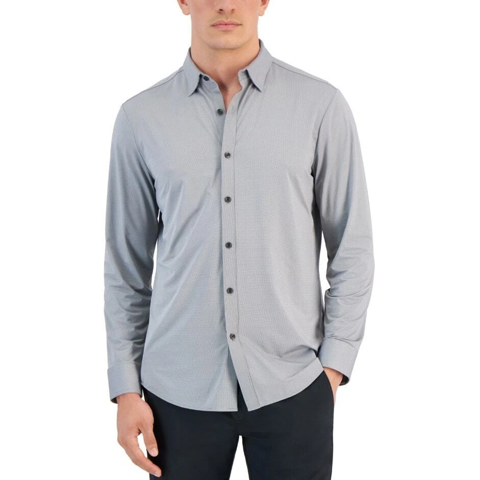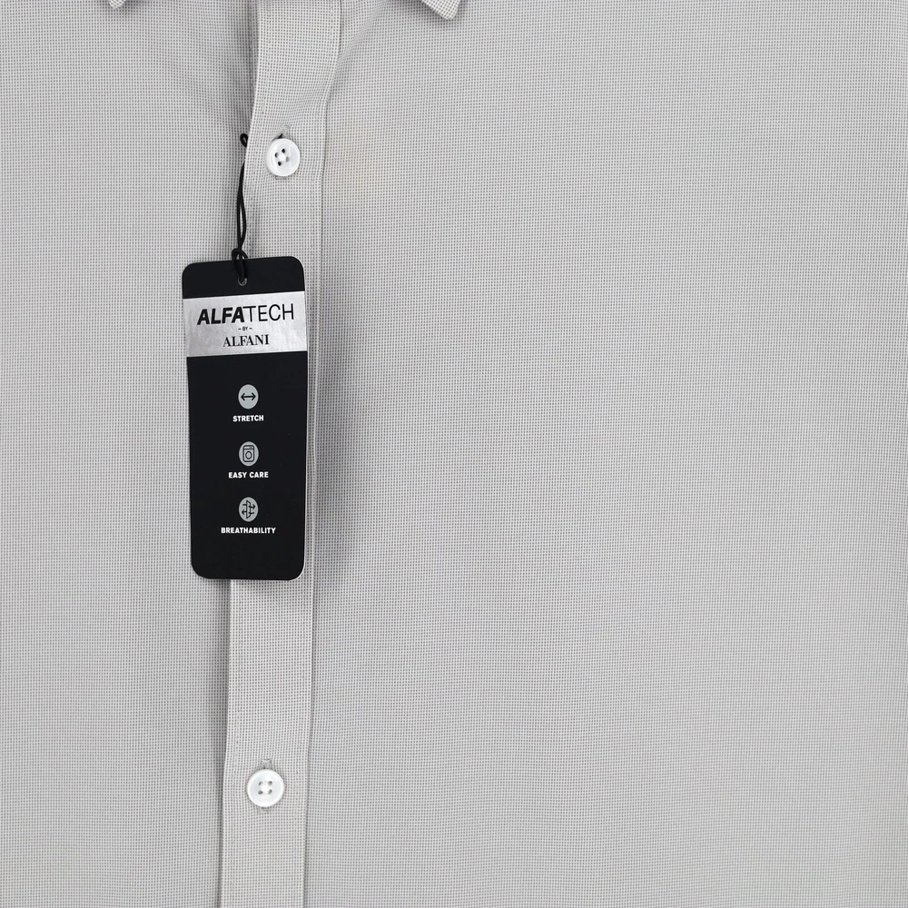 Alfani Men's Light Grey Jersey Alfatech Long Sleeve Performance Shirt Size XXL New with tags Stretch knit fabric with built-in UV sun protection Point collar Button-front closure Long sleeves Button cuffs Classic fit Machine washable 80% nylon / 20% spandex Length 31" Armpit to armpit 26" Sleeve 26"