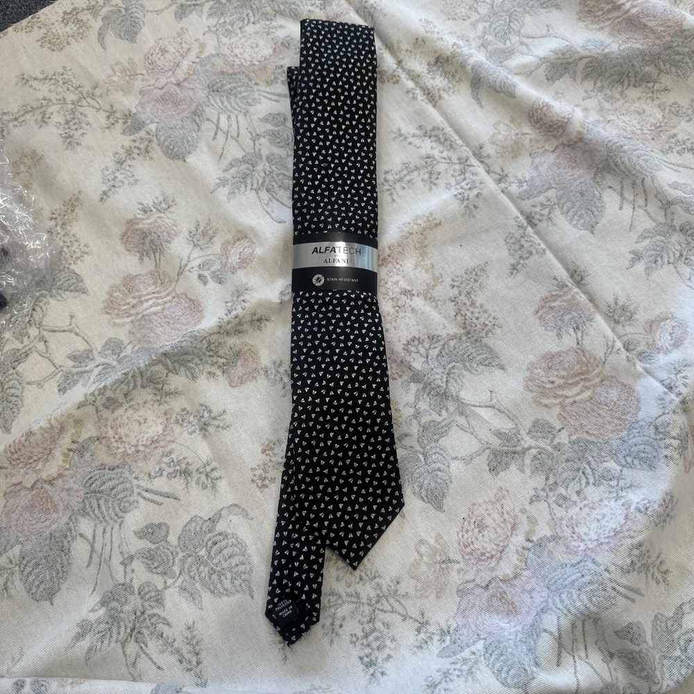 Elevate your formal look with this Alfani Men's Slim Neck Tie. The black polyester tie features a geometric pattern and a skinny width that complements any modern suit. The tie is one size fits all, measuring classic length (57"-60") and woven fabric type that adds texture to your attire. This tie is perfect for any occasion, whether it's a business meeting or a formal event. The ALFATECH brand ensures quality, and the pelican design adds a touch of sophistication. Made in China, this tie is a must-have for any fashion-conscious man.