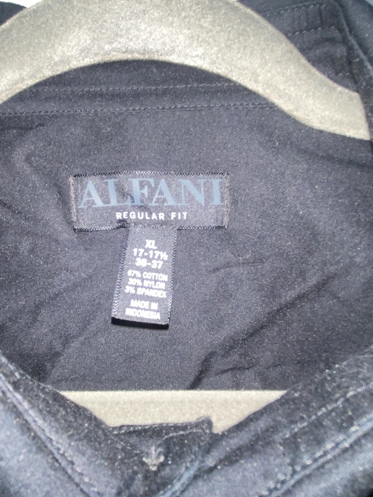 Alfani Shirt Mens XL Black Long Sleeve Button Up Pockets 17-17 3/4 36-37 Neck. Condition is Pre-owned. Shipped with USPS Ground Advantage.