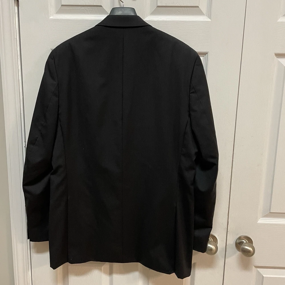 Alfani Sport Coat Mens 46L Slim Black Pinstripe 100% Wool Blazer 2 Button X