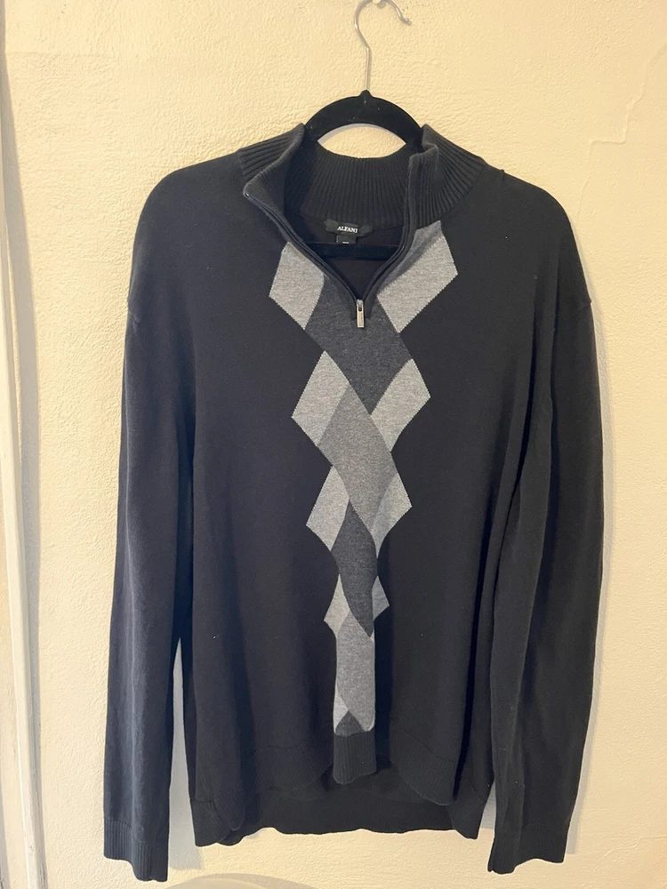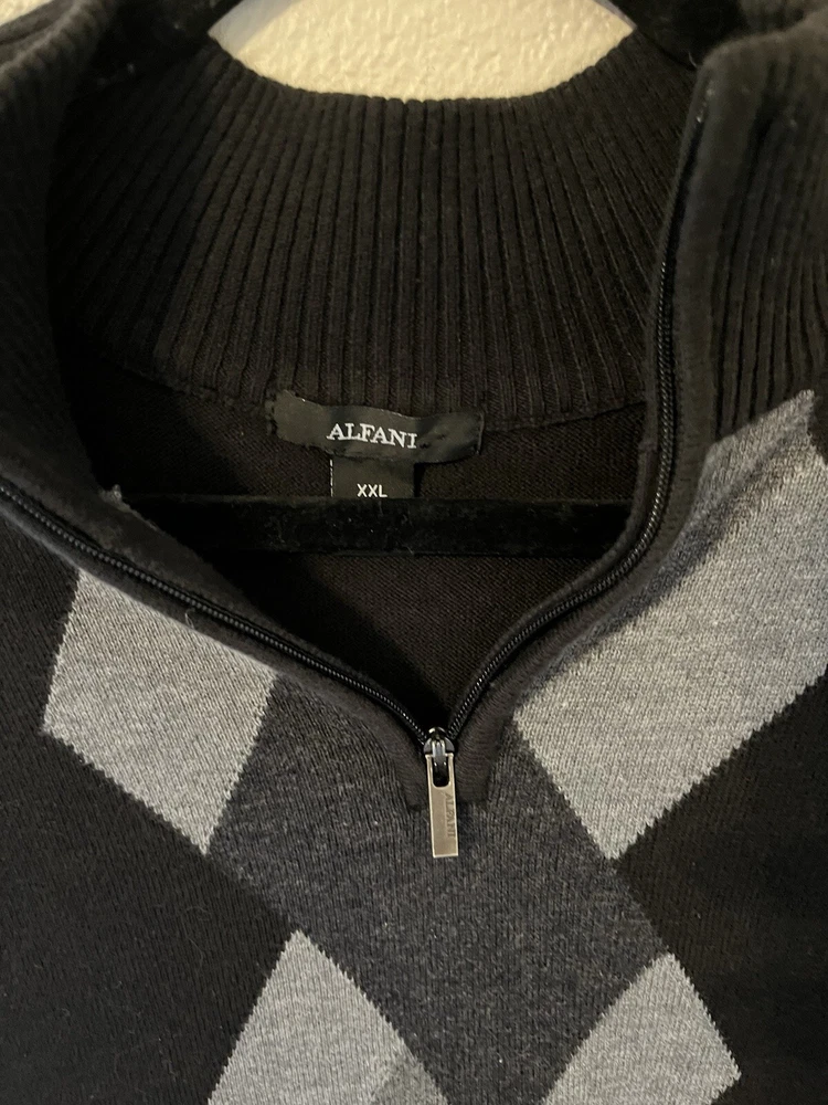 Vintage: No Fabric Type: Knit Knit Style: Tight-Knit Personalize: No Size: 2XL Occasion: Business, Casual, Travel Color: Gray Brand: Alfani Season: Fall, Winter Performance/Activity: Golf, Hiking, Walking Country/Region of Manufacture: China Material: Cotton Features: 1/4 Zip, Breathable, Lightweight Pattern: Argyle/Diamond Size Type: Regular Sleeve Length: Long Sleeve Theme: Classic, Outdoor, Preppy Department: Men Fit: Regular Garment Care: Machine Washable Neckline: High Neck Type: Sweater Style: Pullover