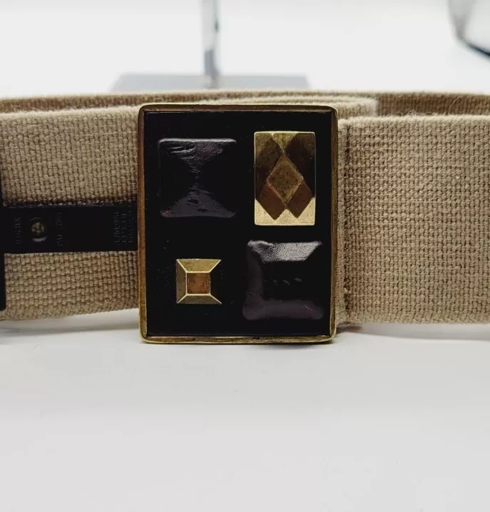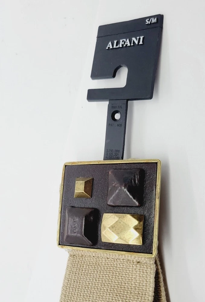 Style:Waist BeltSize Type:RegularBelt Width:2.25 inFeatures:Adjustable, StretchSize:Medium - LargeModified Item:NoHandmade:NoUPC:Does not applyVintage:YesSeller Notes:“May have slight mark blemish on belt where tag located - please see photos overall A- condition”Type:BeltBrand:AlfaniWaist Size:28 in end to end AdjustablePattern:SolidColor:Natural KhakiTheme:Designer BeltsDepartment:WomenPersonalize:Nogtin13:Does not applyMaterial:80% Polyester 20% Rubber