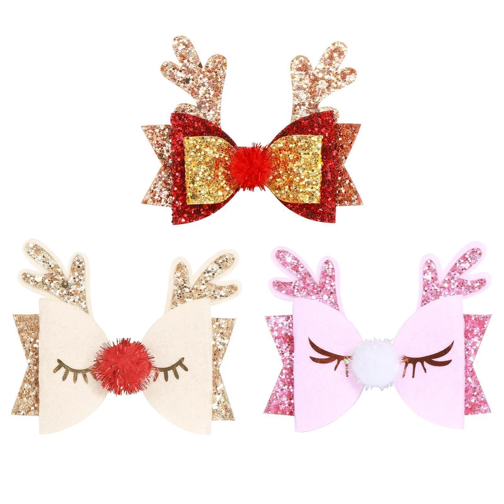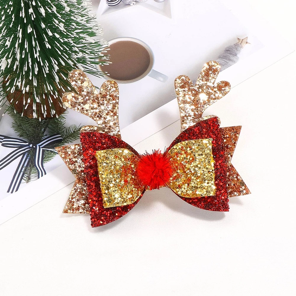 Description: Product Description: 1. Product name: Christmas Sparkling sequins Braided Hair Clips 2. Product size: as shown in the figure 3. Product style: hair clip 4. Product color: as shown in the figure 5. Product material: cloth Features: 1. Unique design: Complete with pretty bows and pretty bobby pins to add a super cute look to your hair when you use a bow 2. For all occasions: Cute bows are perfect for any occasion. Birthdays, parties, baby shows, baby presents, Christmas and New Year's 3. Easy to use: Safe for your loved ones, light and non-slip, won't tear out your hair and keep your style Package includes: 1pc hair clip