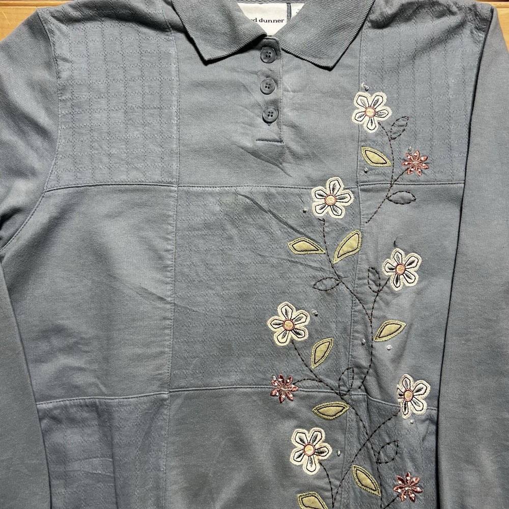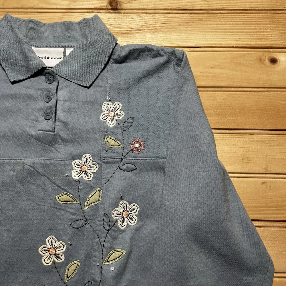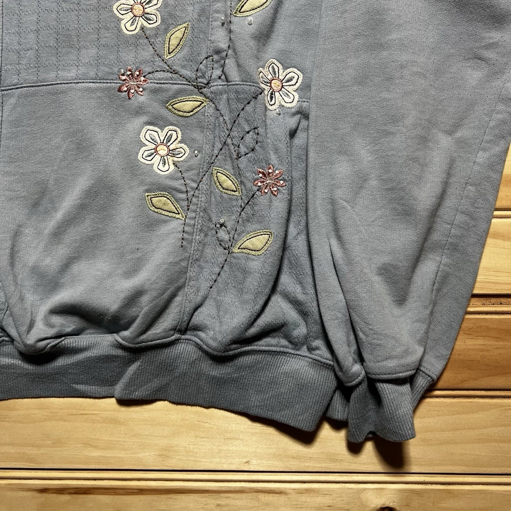 Alfred Dunner Womens Small Embroidered Flower Sweatshirt Sweater