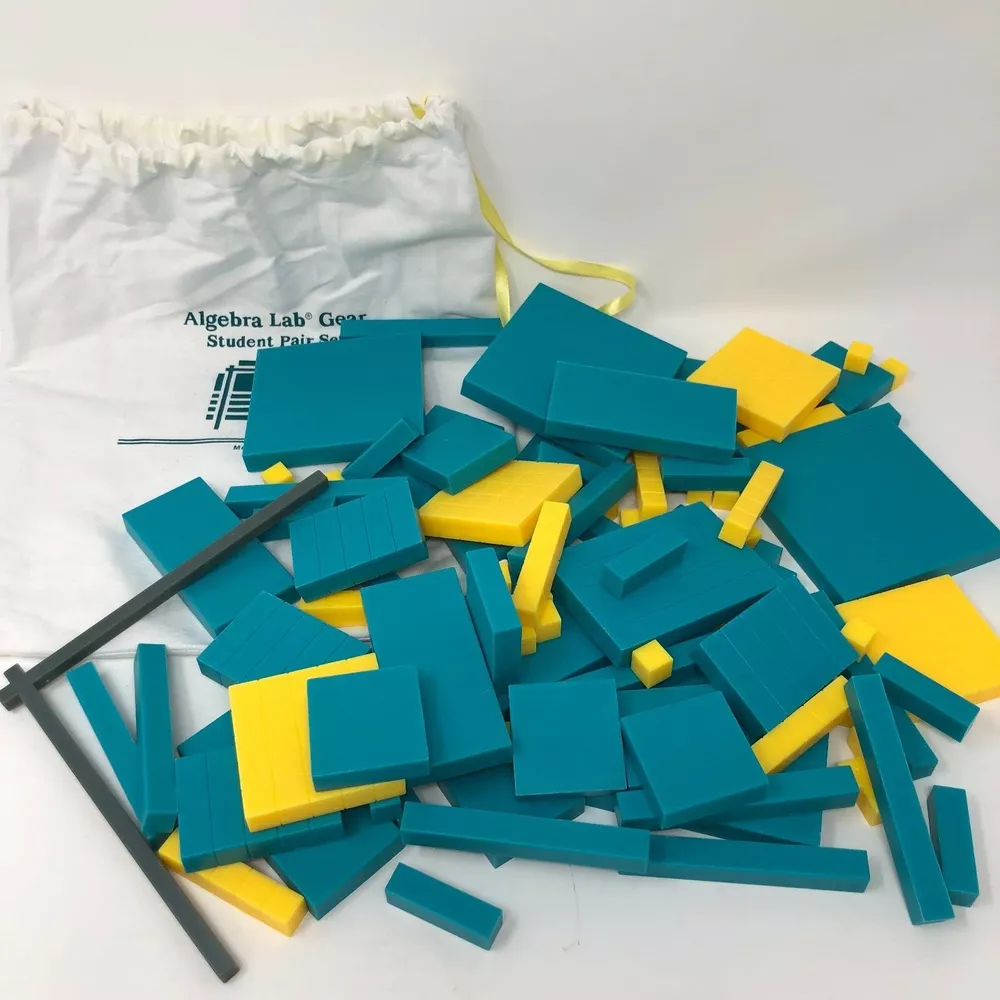 Algebra Lab Gear Student Pair Set Algebra / Math Manipulative Blocks to Help Visual Learners Includes Carrying Bag Includes 103 Pieces Bag may have slight shelf wear No major damage See all pictures.
