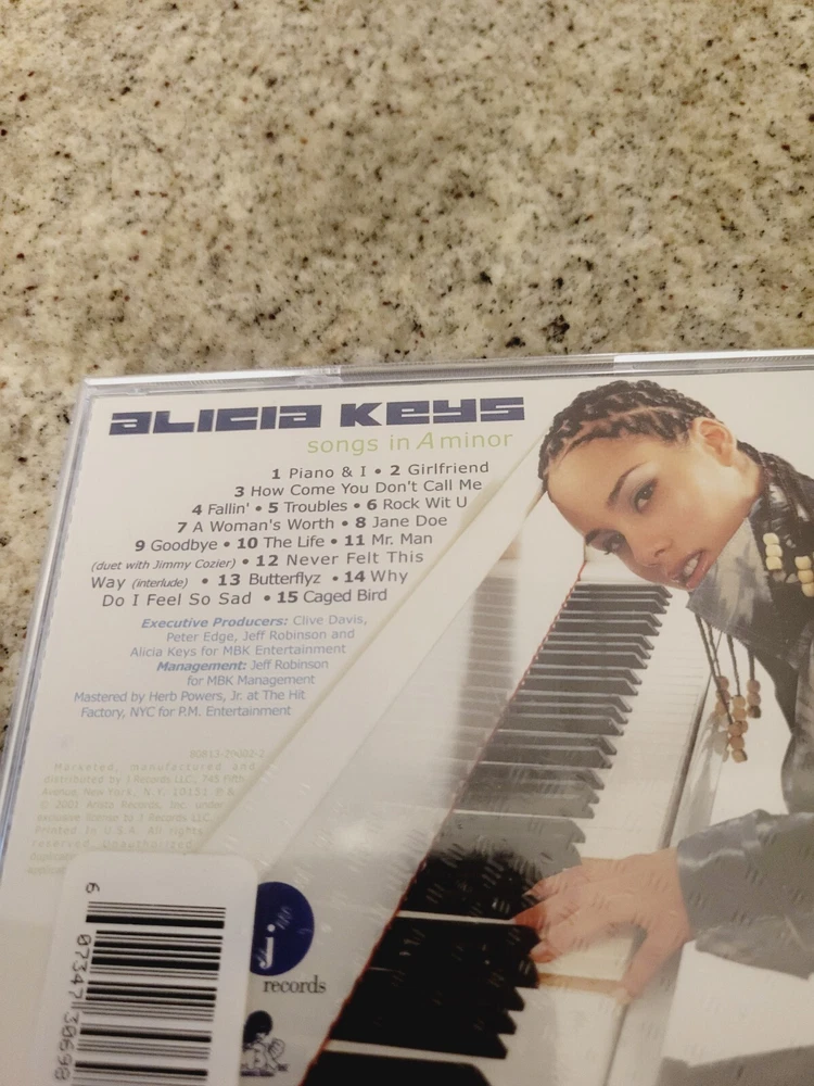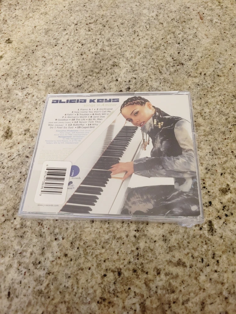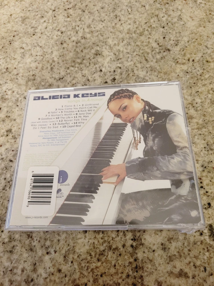This is a brand new, never opened Alicia Keys CD titled Songs in a Minor. It features 15 tracks of classic urban music, with a style that blends contemporary R&B and neo soul. The CD comes in a standard jewel case and includes the original cover and inner sleeve. The album was released in 2001 and produced by Alicia Keys along with Arden Altino, Brian Mcknight, Jermaine Dupri, Jimmy Cozier, Kandi, and Kerry Brothers. The CD is a first edition collector's edition and is a must-have for any Alicia Keys fan. This item is perfect for anyone looking to add a great piece of music to their collection.