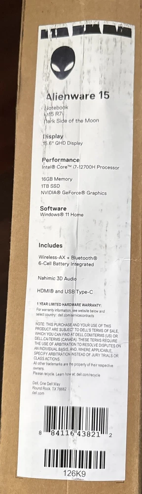 Alienware M15 R7 15.6 QHD 240HZ, Intel i7-12700H 16GB DDR5, 1TB SSD, RTX 3070 Ti