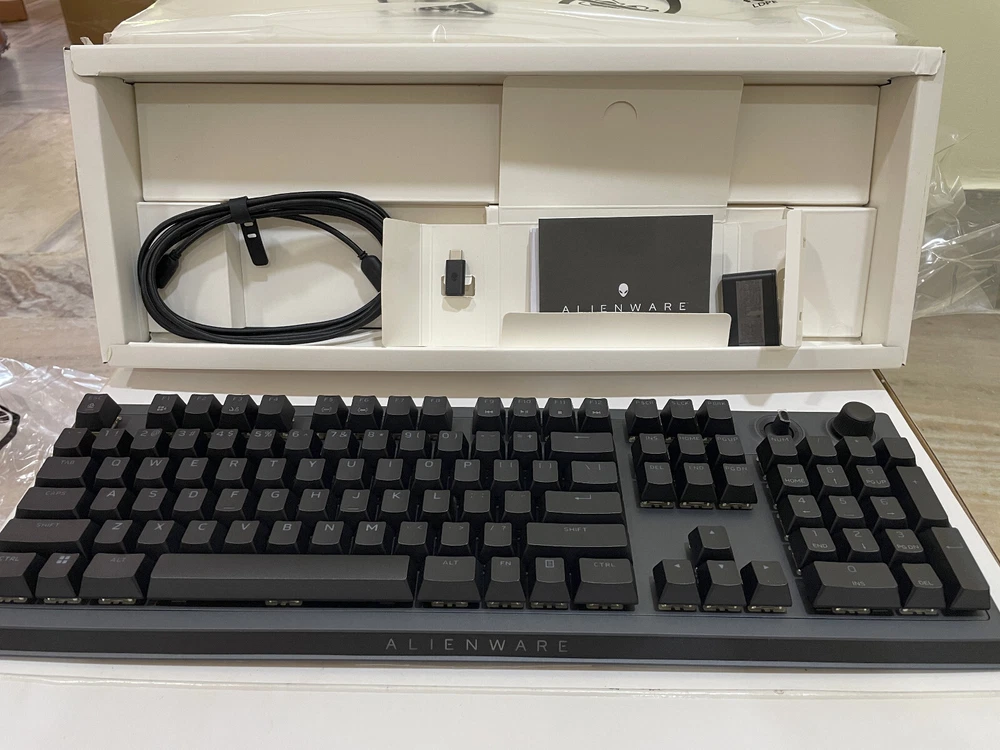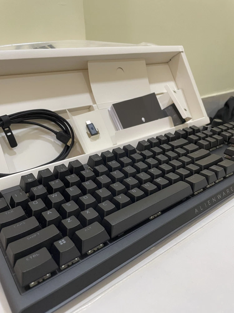 Type: Gaming Model: AW920K Connectivity: Wireless Keyboard Language: English Brand: Alienware Keyboard Layout: QWERTY (Standard) Color: Dark Side of the Moon
