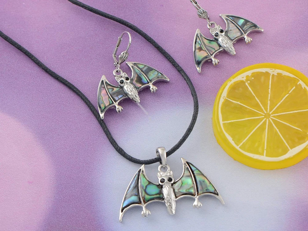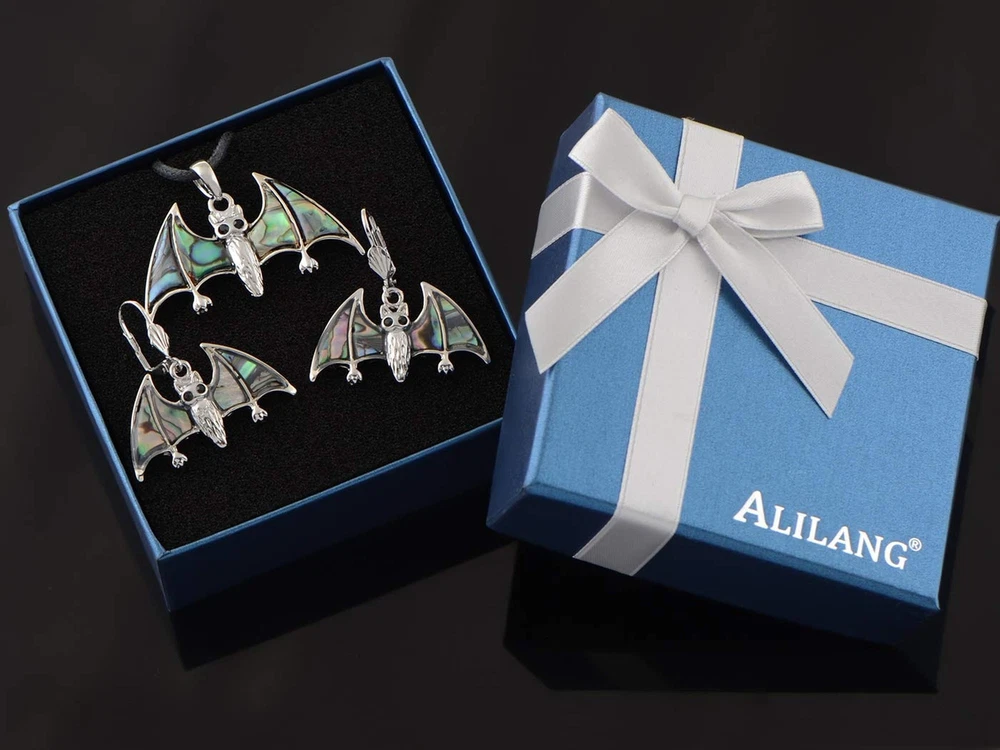 Alilang Abalone Colored Enamel Gothic Halloween Bat Necklace Dangle Earrings Jewelry Set Product Details Package Dimensions : 4.33 x 4.33 x 0.55 inches; 2.08 ounces Item model number : N0891 Department : womens Date First Available : September 4, 2014 Manufacturer : Alilang Brand, Seller, or Collection Name: Alilang Metal stamp: Not stamped Metal: alloy Material: Rhinestone Chain: Link Clasp: Hook Clasp Ring size: adjustable Model number: N0891