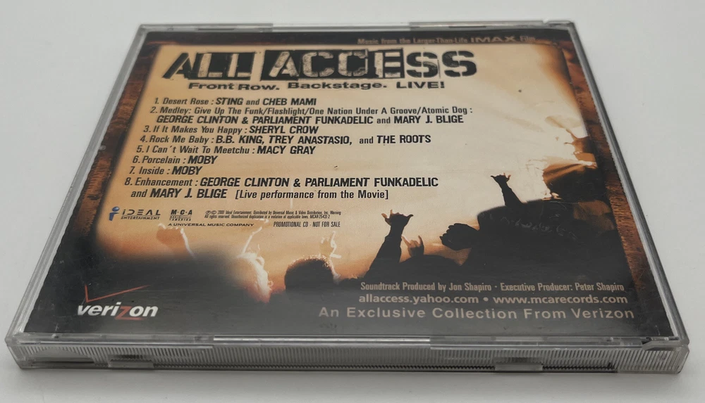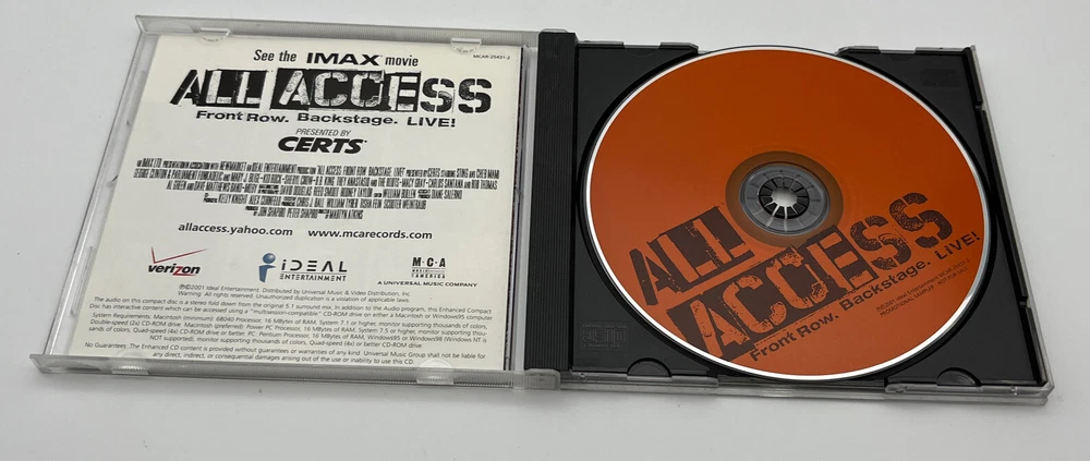 All Access Front Row Backstage Live! Exclusive Collection From Verizon Audio CD. CD is in very good condition CD case is cracked Please see and zoom all photos