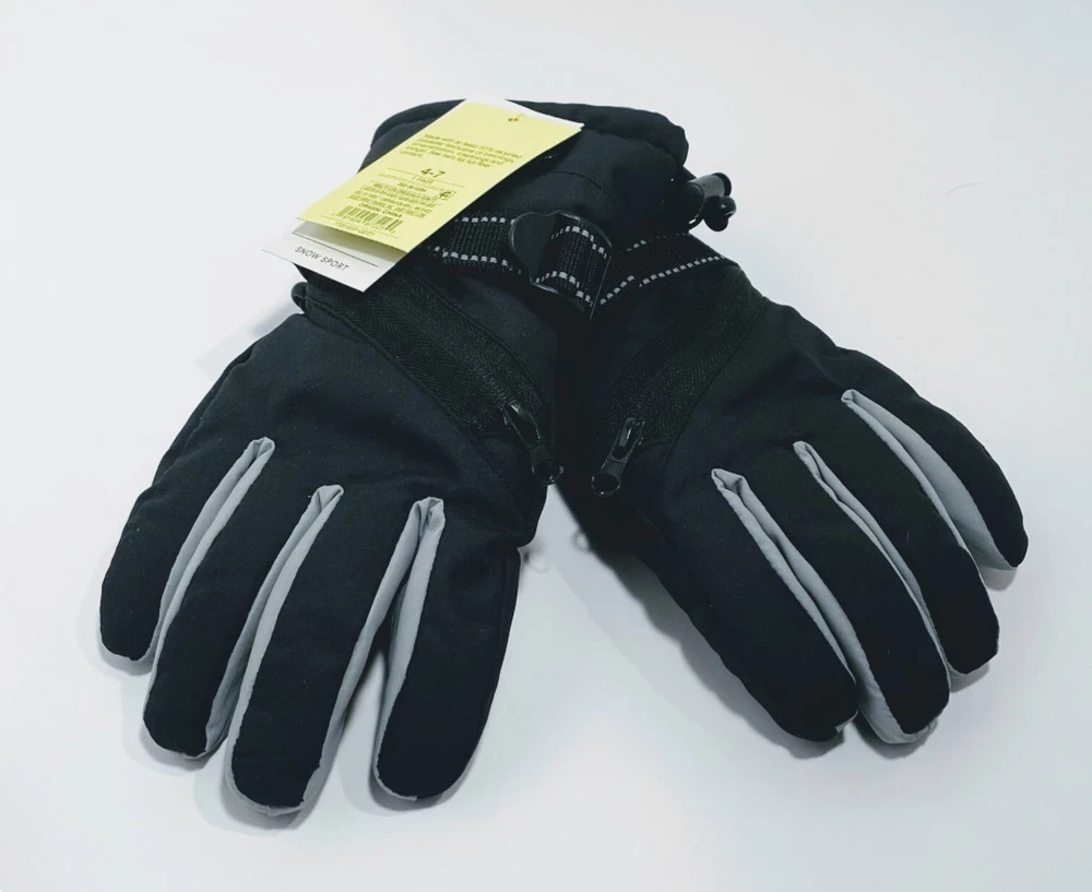 All In Motion Kids Snow Gloves Snow Sport Sizes 4-7 and 8-14 Clips onto Jackets with all the all in Motion Clip System Palm Patches for enchanced grip Secure Zipper Pocket Adjustable cuffs A must for snow sports and color weather